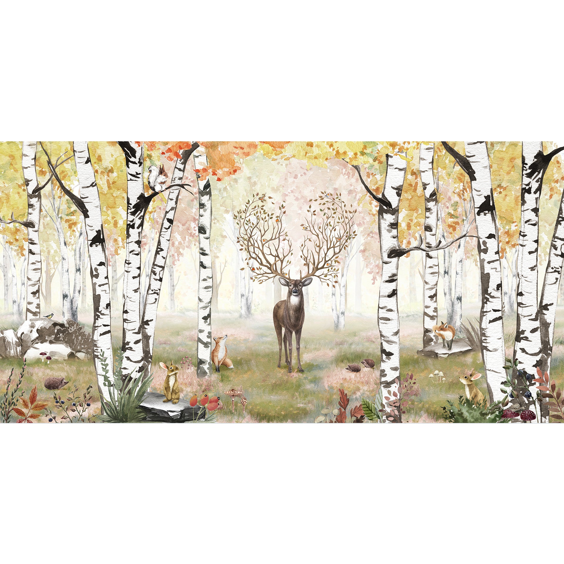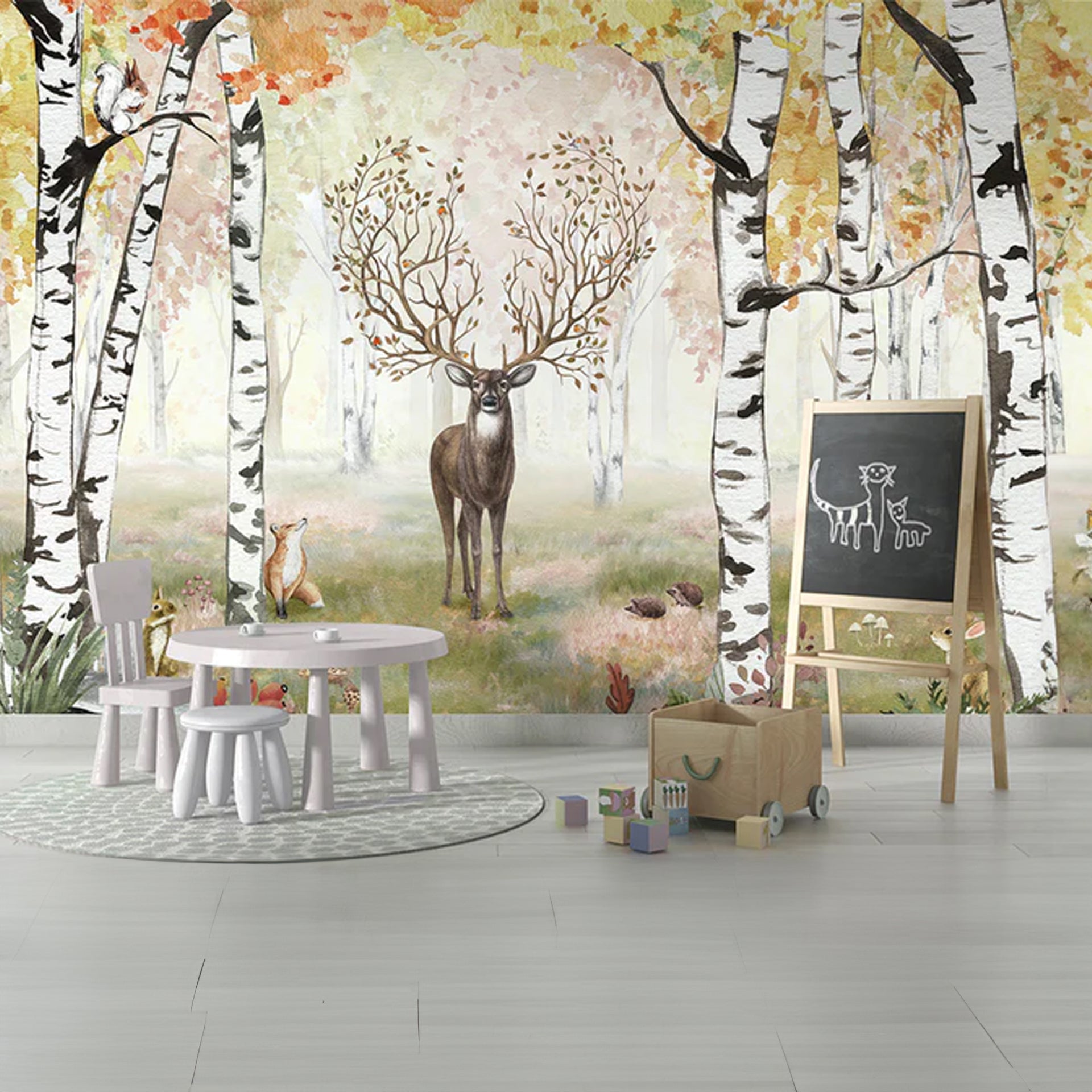 Amazing-Antlers: Autumn Forest Scene With Deer, Birch Trees, and Woodland Animals