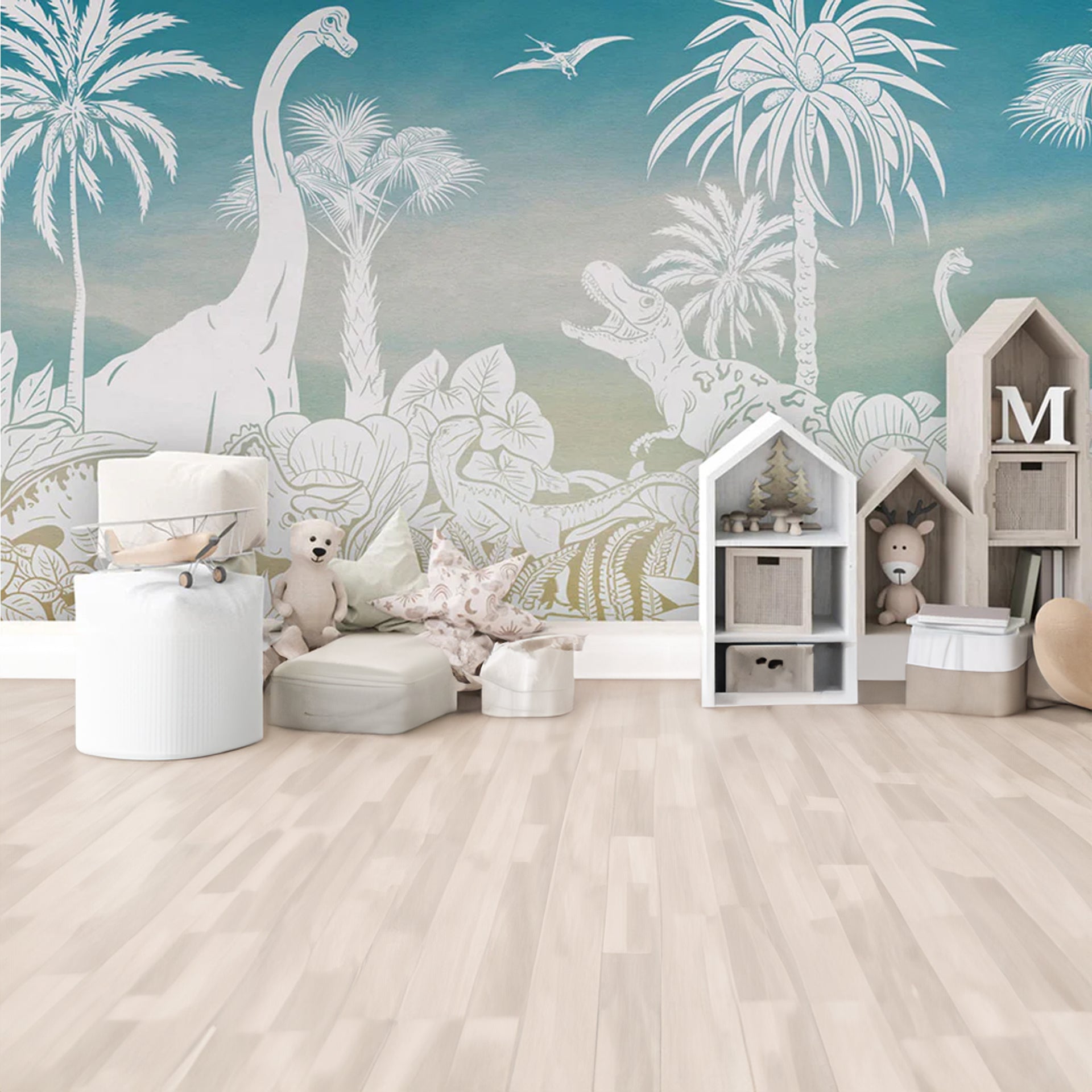 Dino-Joy: Prehistoric Dinosaurs And Palm Trees In White Silhouette