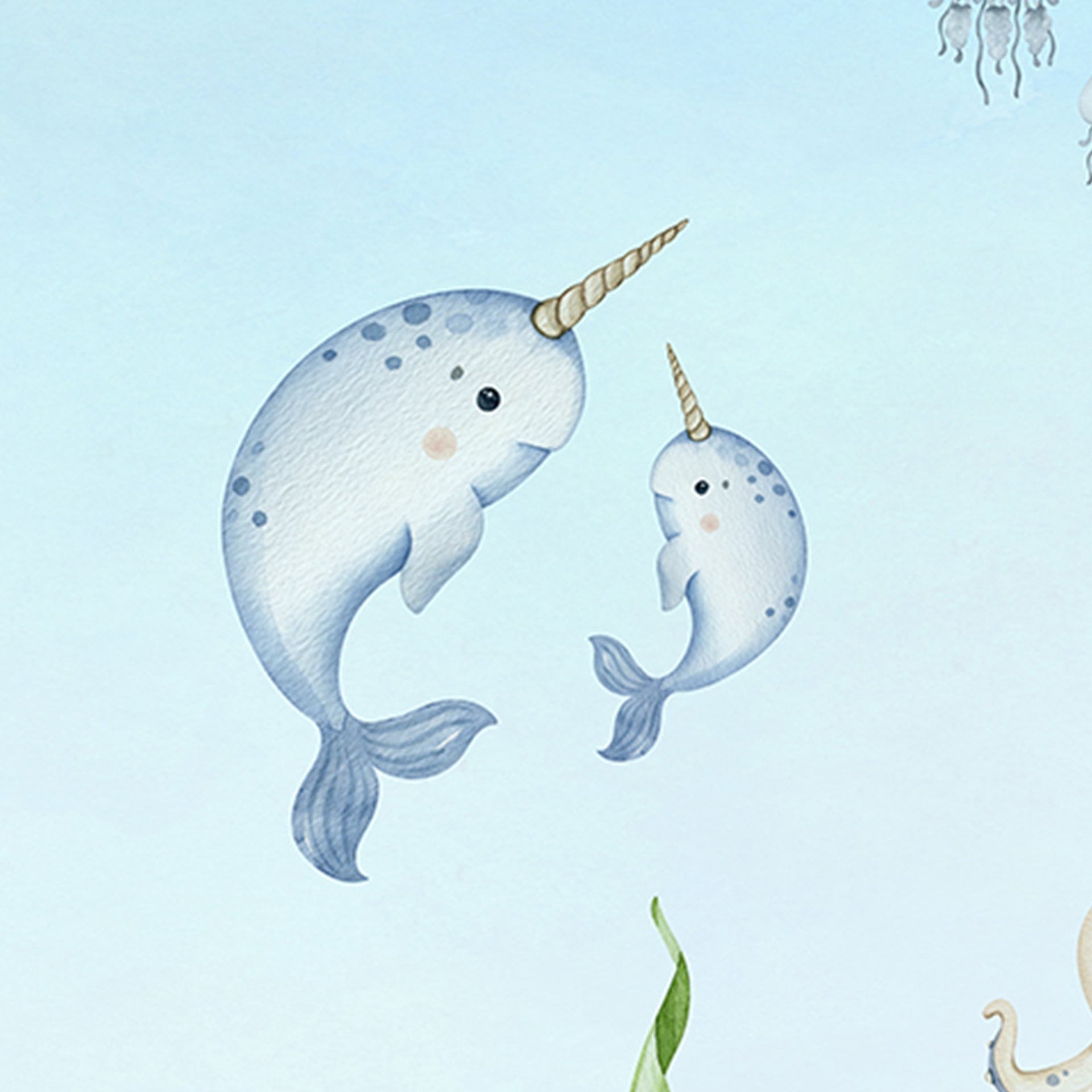 Ocean-Joy: Whimsical wallpaper With Whales, Coral Reef, Jellyfish, Submarine