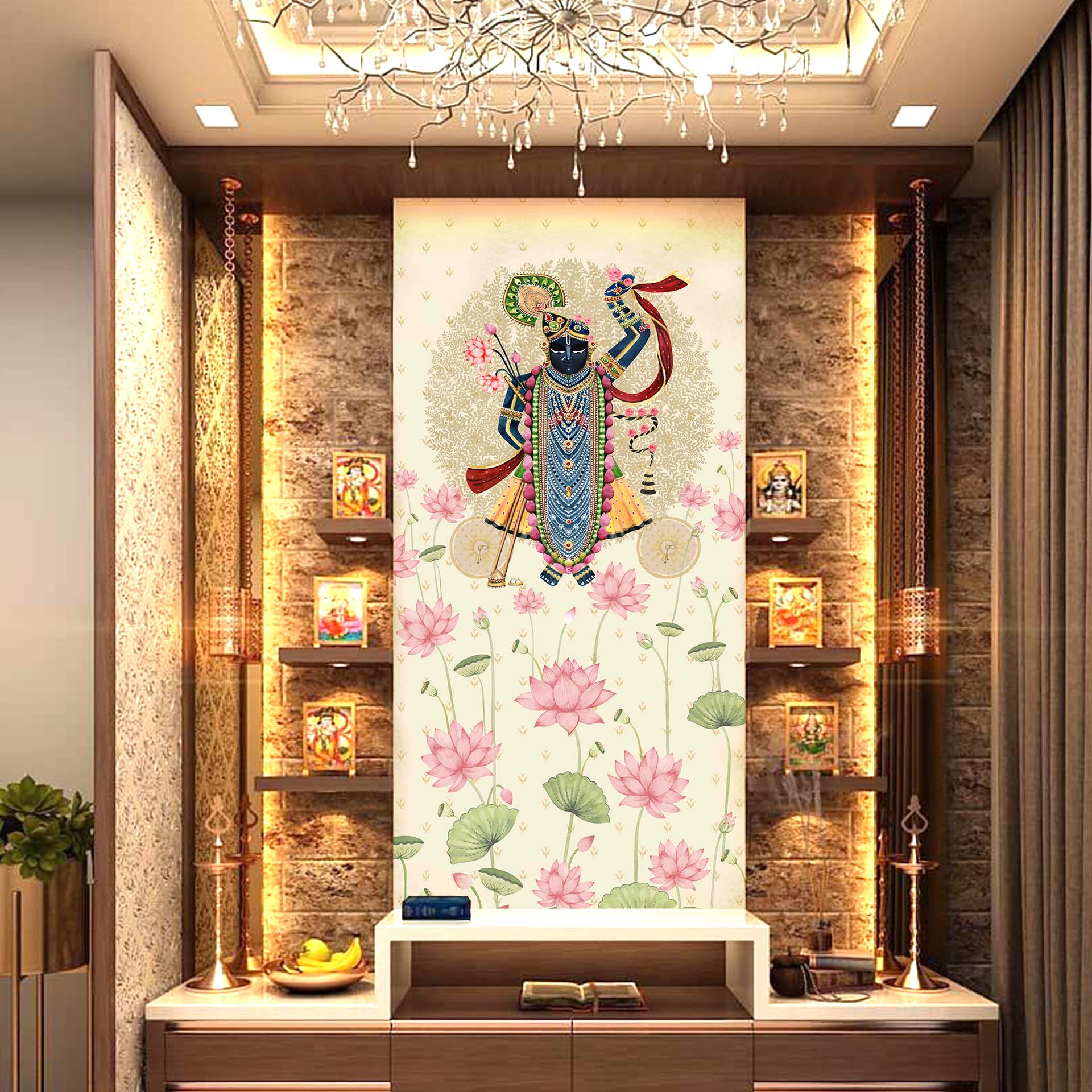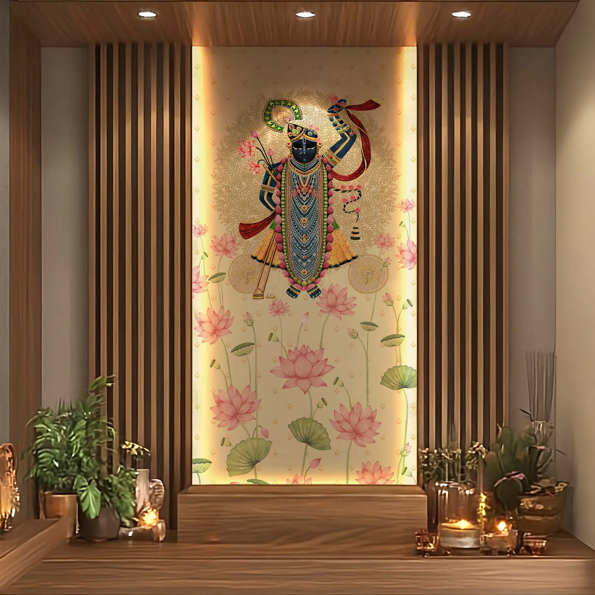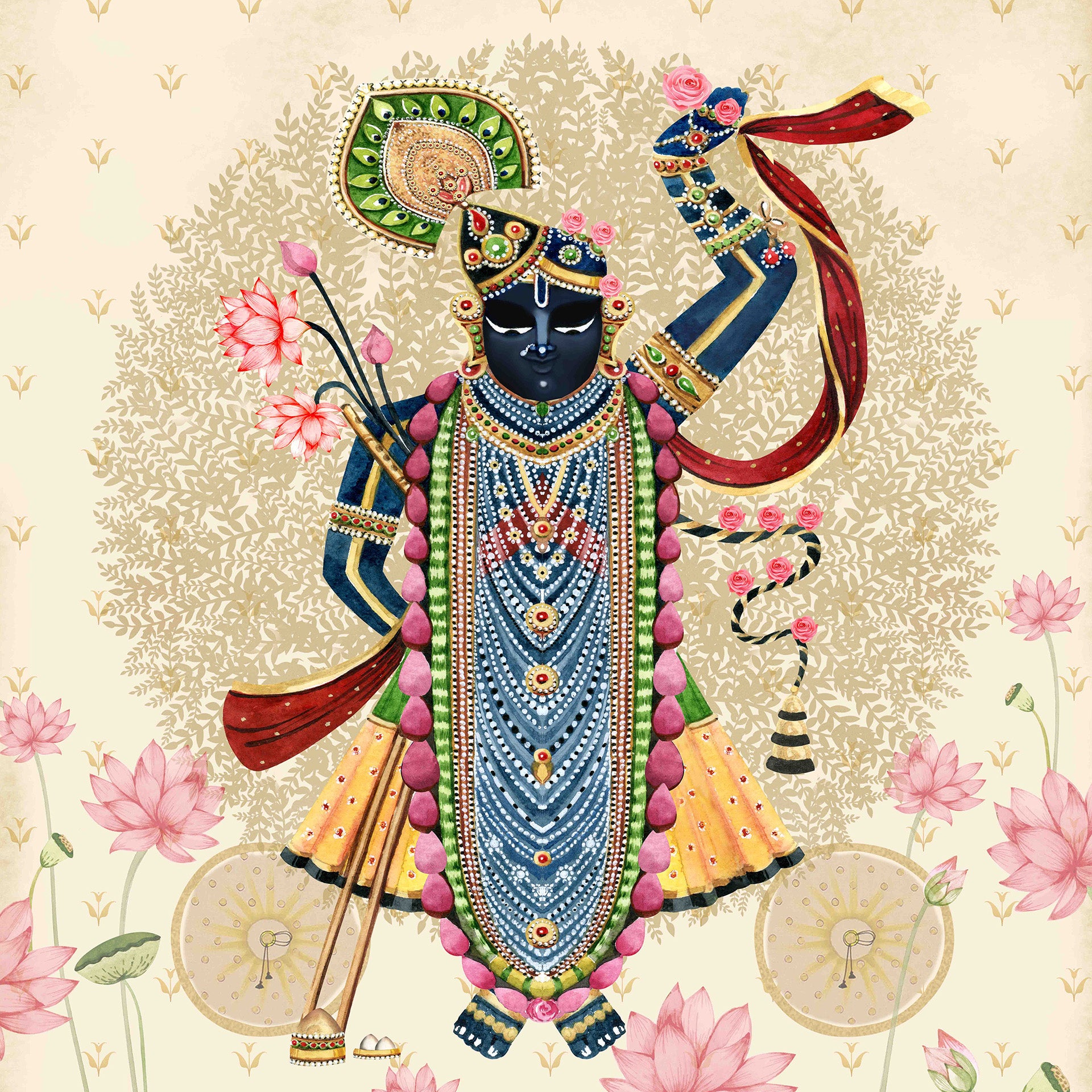 Ornate Krishna: Lord Krishna Illustration With Lotus Flowers and Devotional Motif