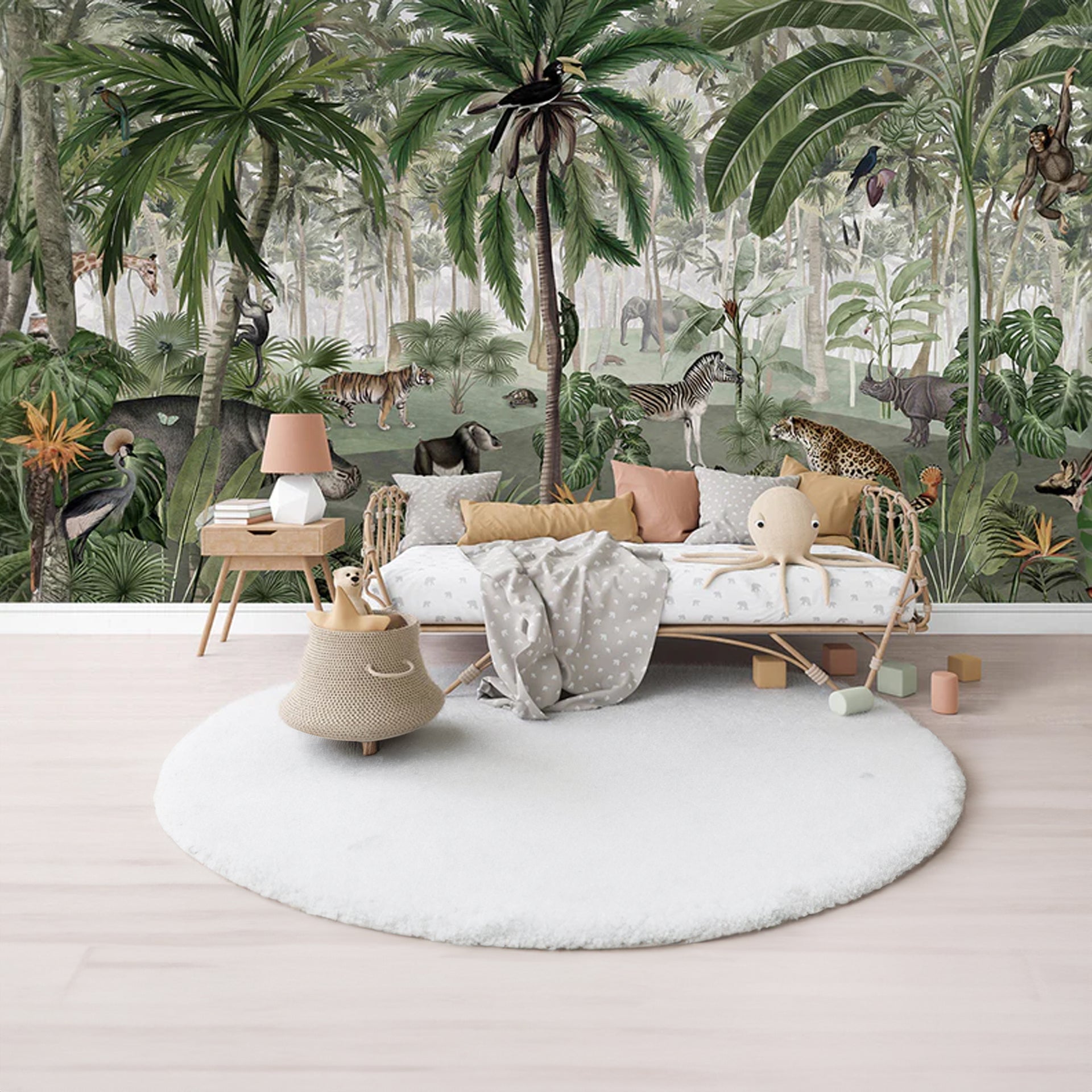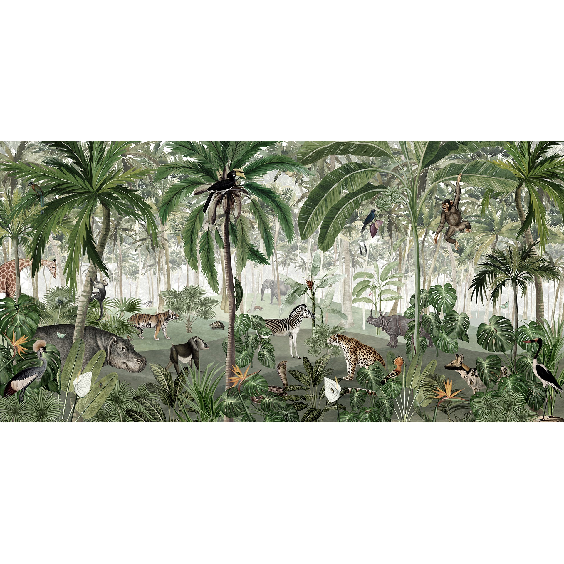 Jungle-Lookbook:Wallpaper With Diverse Animals, Lush Trees, And Hidden Flora For Nature Lovers