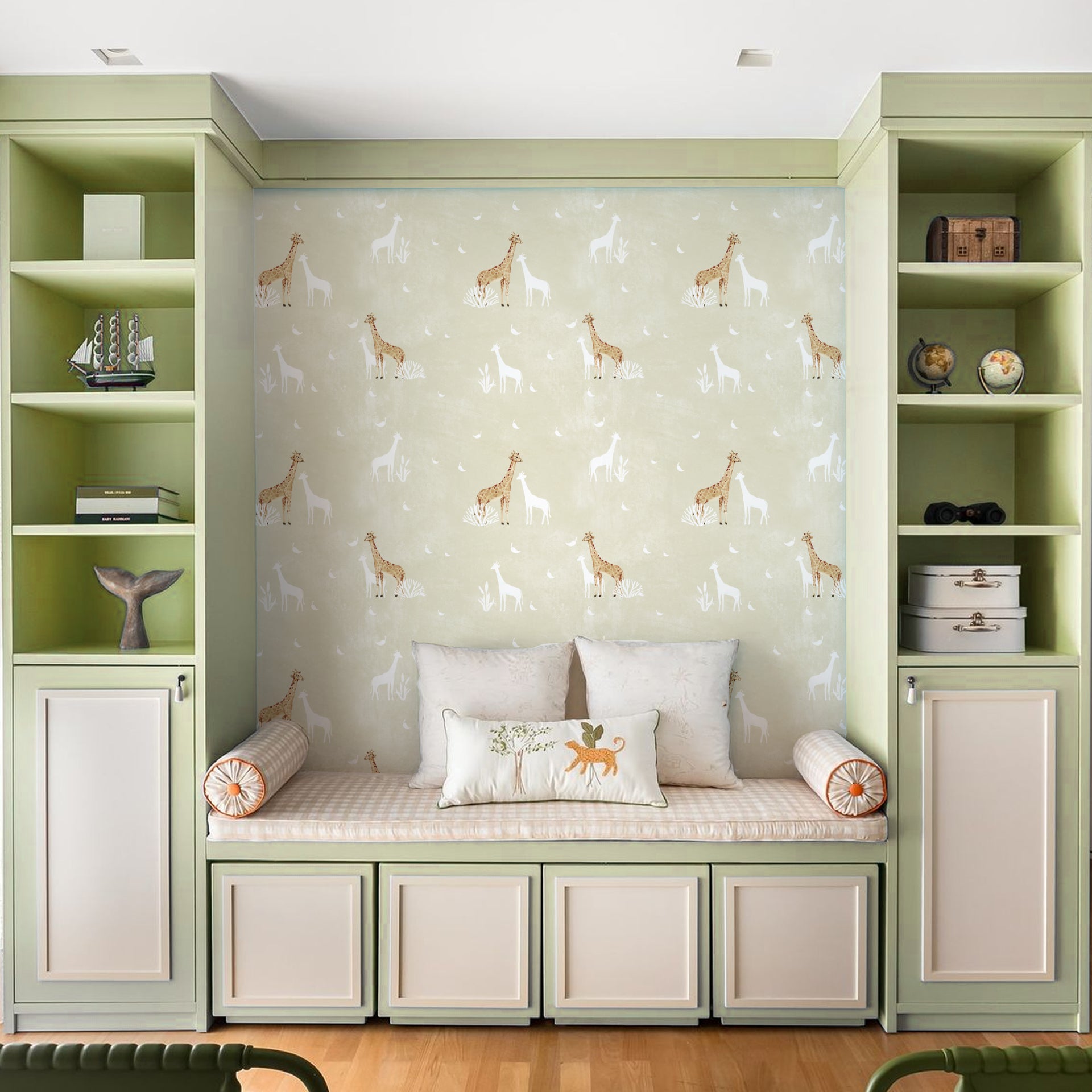 Giraffe Galore: Serene Giraffe Galore Wallpaper For Kids Room
