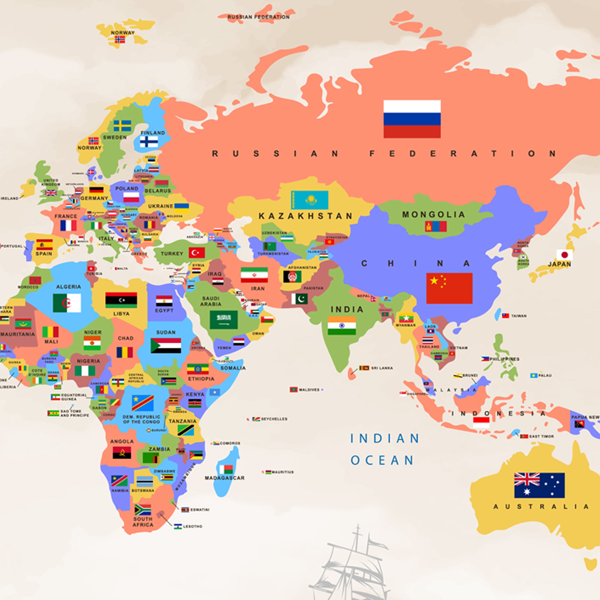 Colourful World Map Wallpaper with Country Flags Perfect for playrooms, study rooms, and educational spaces that helps spark curiosity and learning. It’s a fun and interactive décor choice for growing minds.