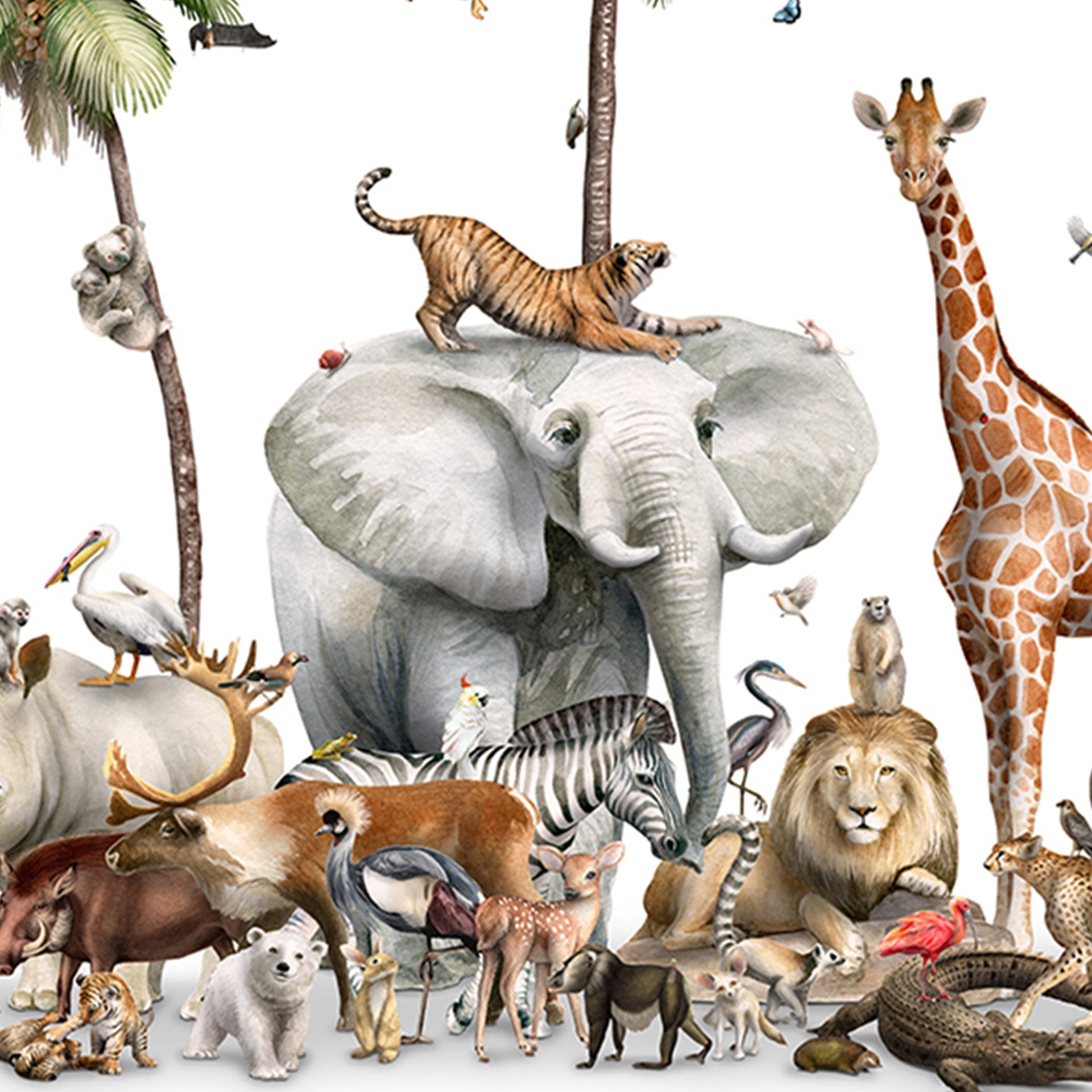 Beautiful-Biodiversity: Wallpaper With Diverse Animals Including Elephants, Giraffes, Lions, Tigers And Colorful Birds-Sample