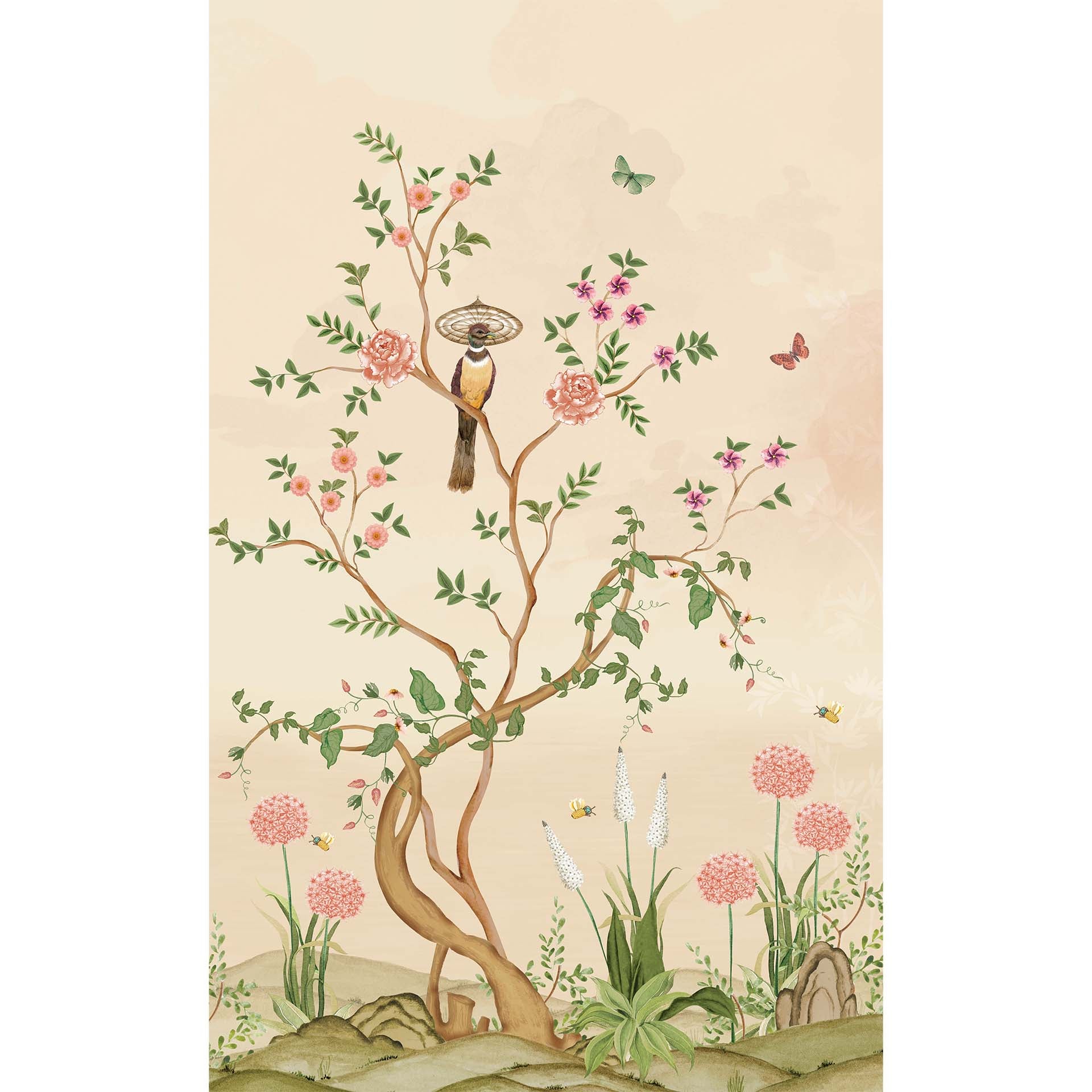 Bird with the Hat: Vintage Floral Tree Illustration With Bird, Blossoms, Butterflies and Garden Plants-Sample