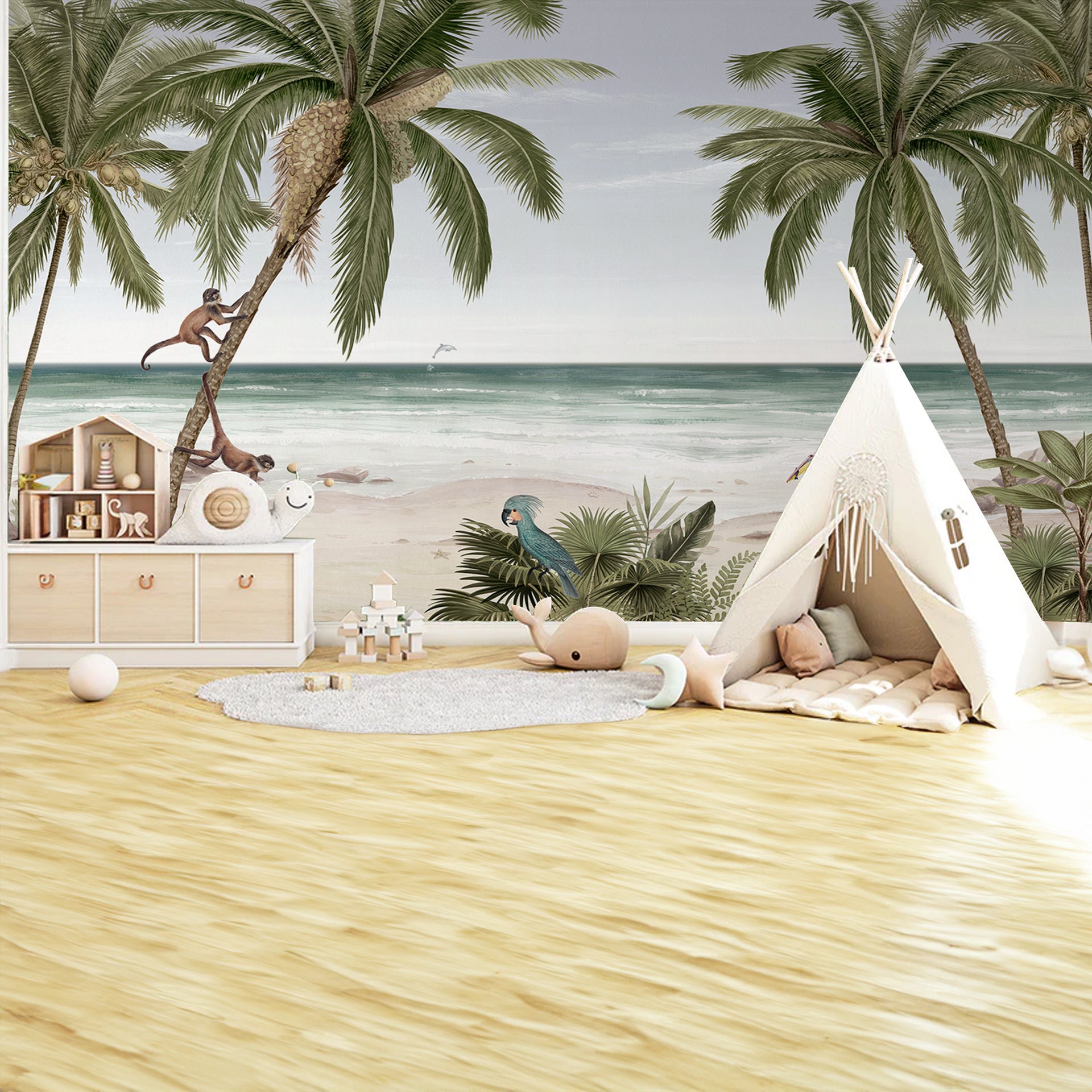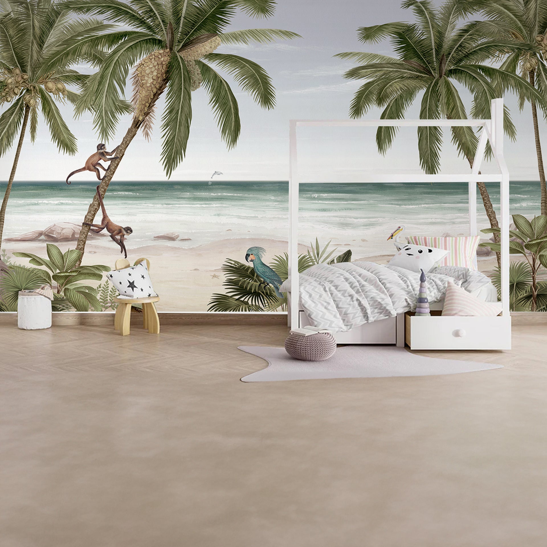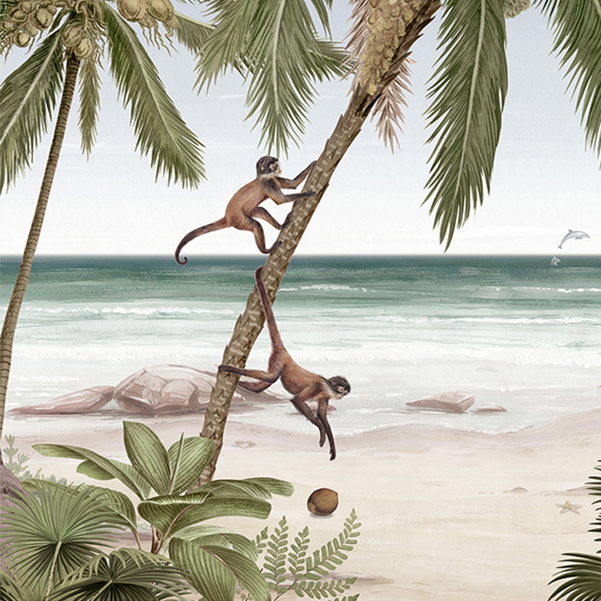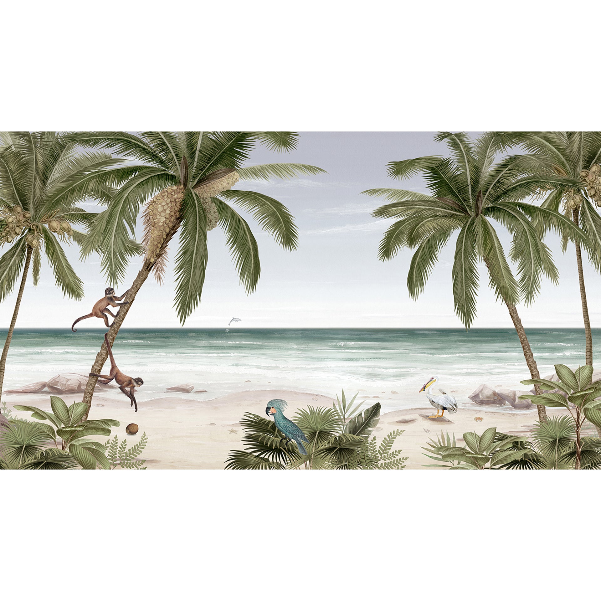 Bounty-Beach: Tropical Beach Wallpaper With Palm Trees, Monkeys, Parrots And Calm Ocean-Sample
