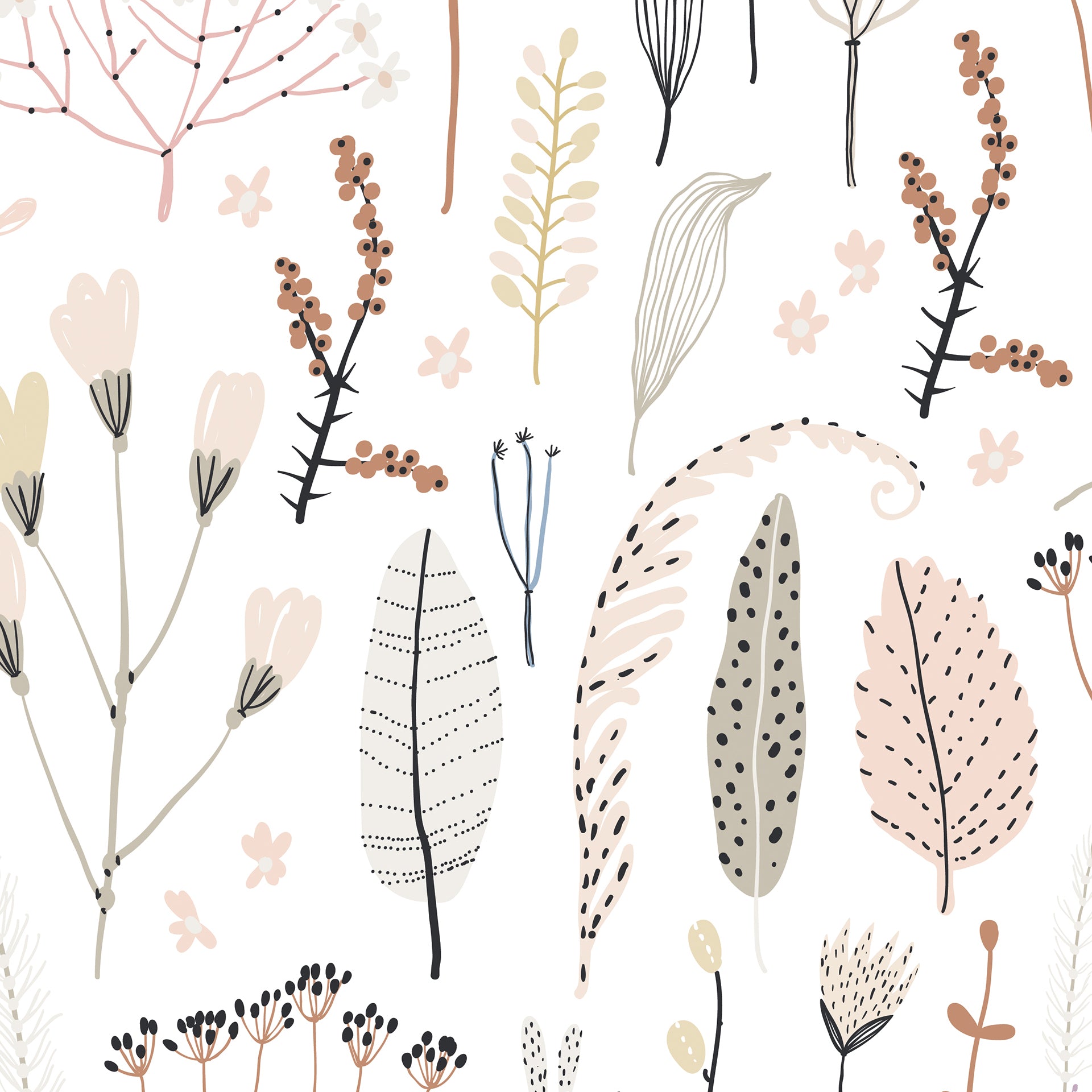 seamless pattern with flowers, branch, leaves. Vintage background
