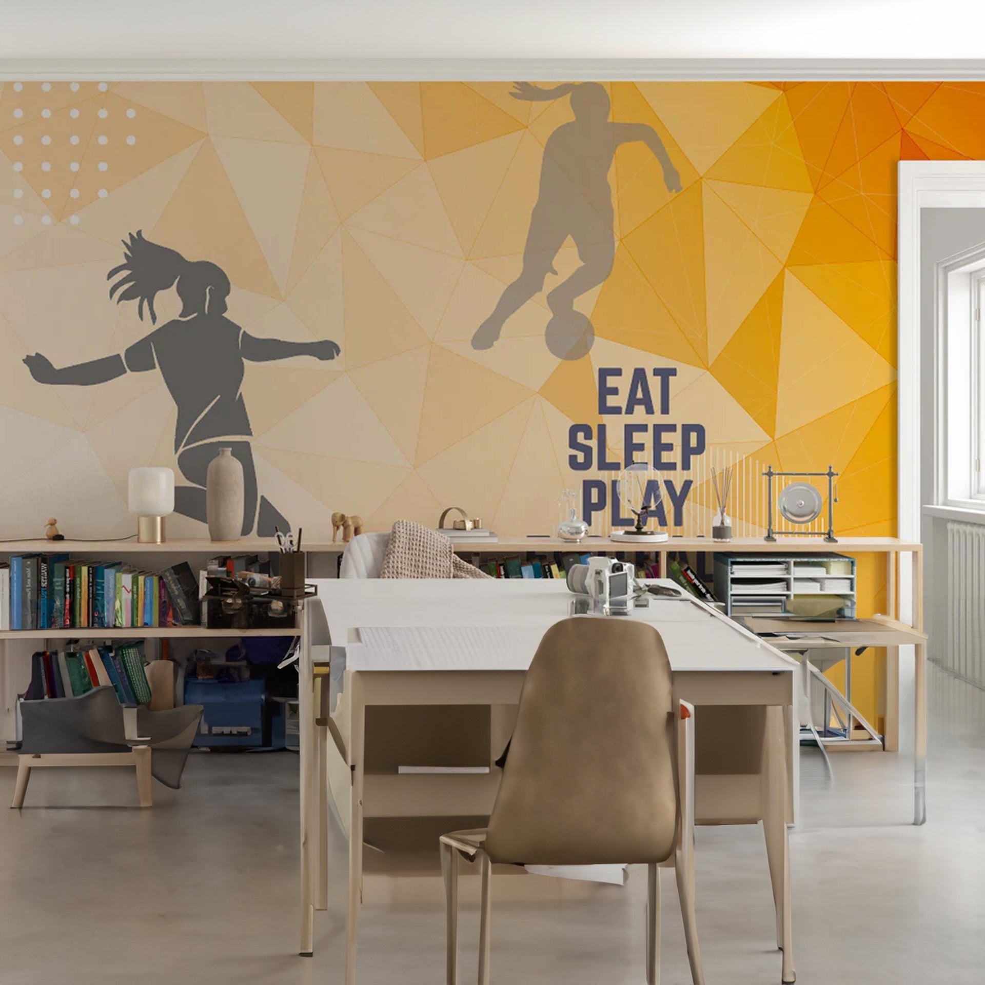 Fuel your little champion's dreams with our Inspiring wallpaper for football lover. Perfect for playrooms, boys' rooms, and pre schools, this wallpaper is customizable.