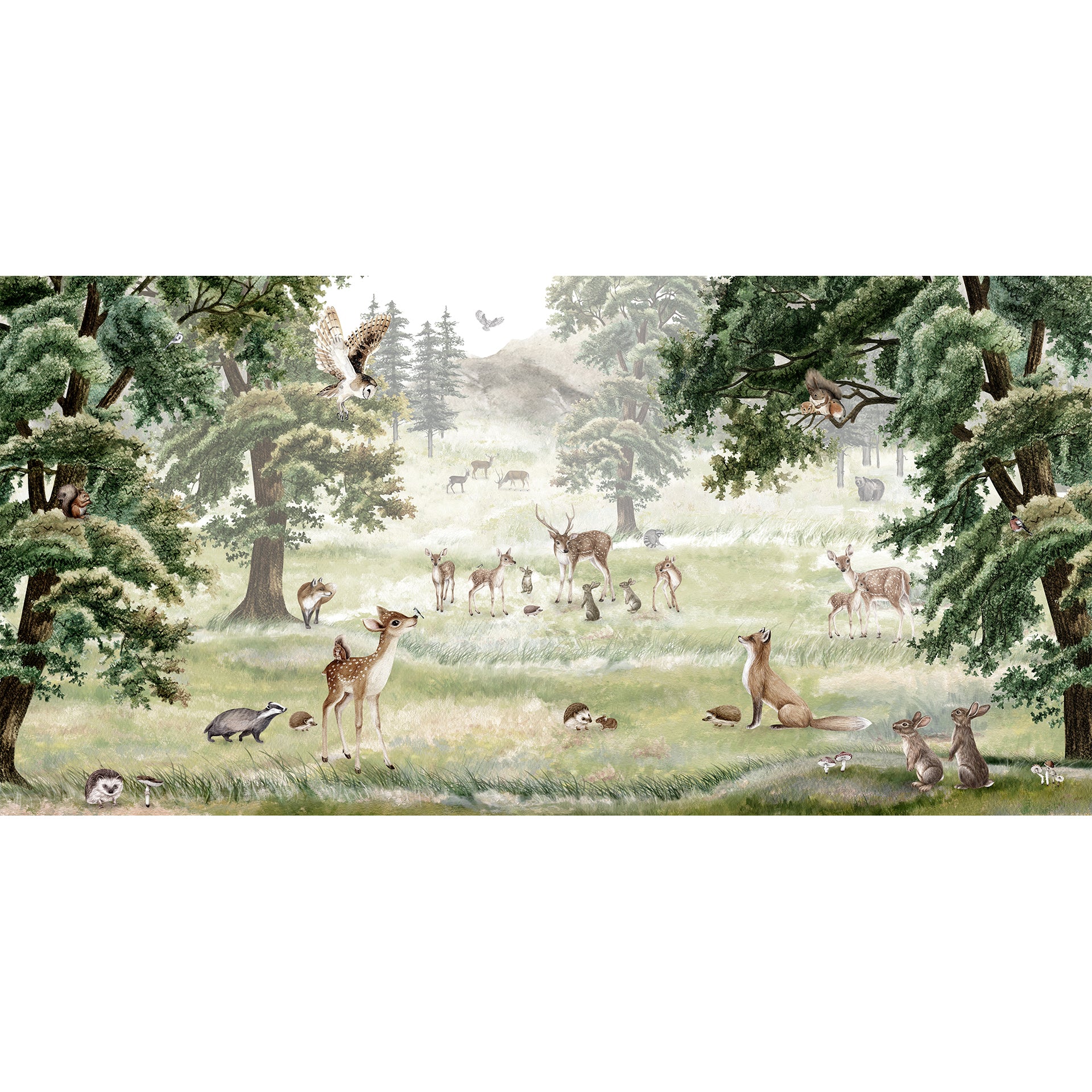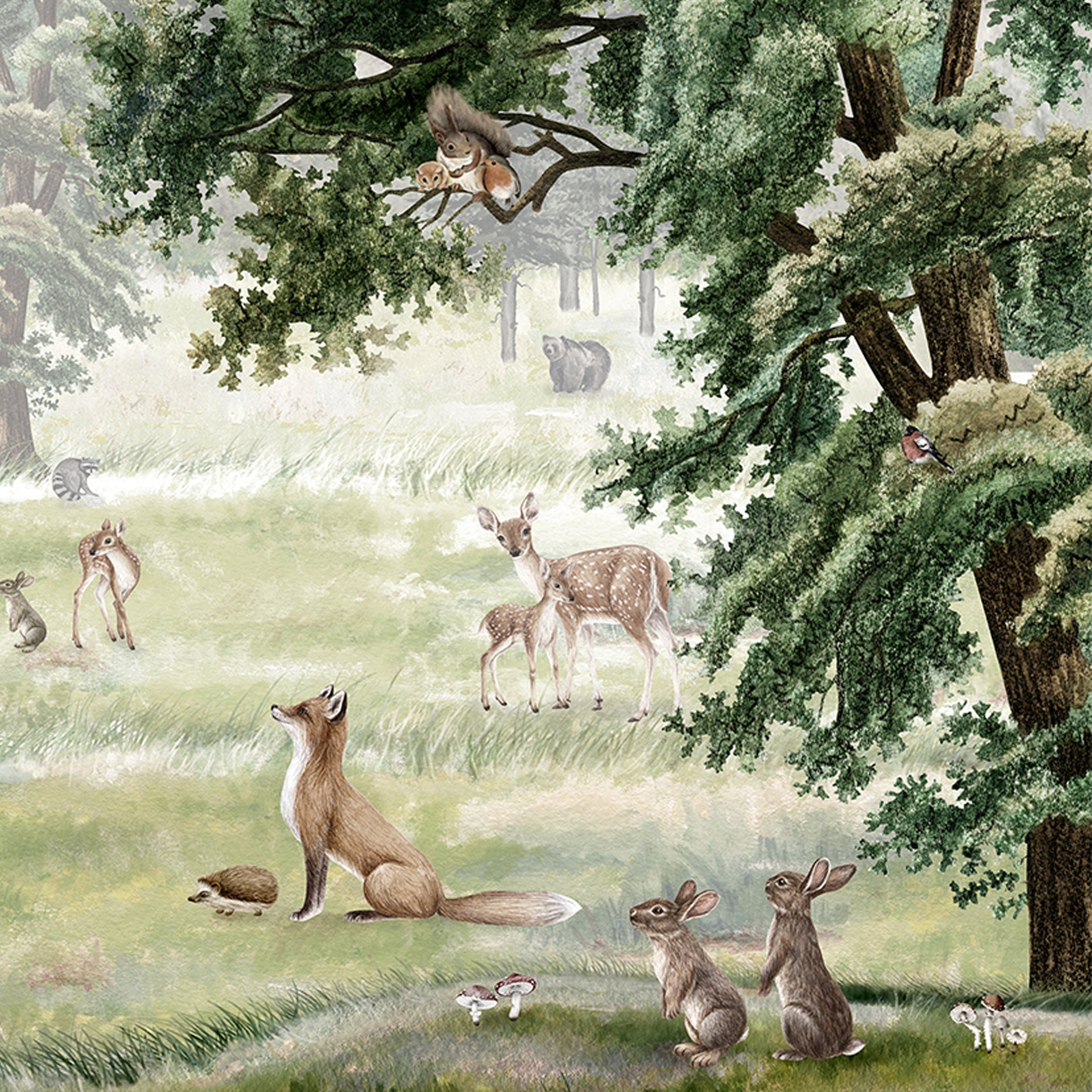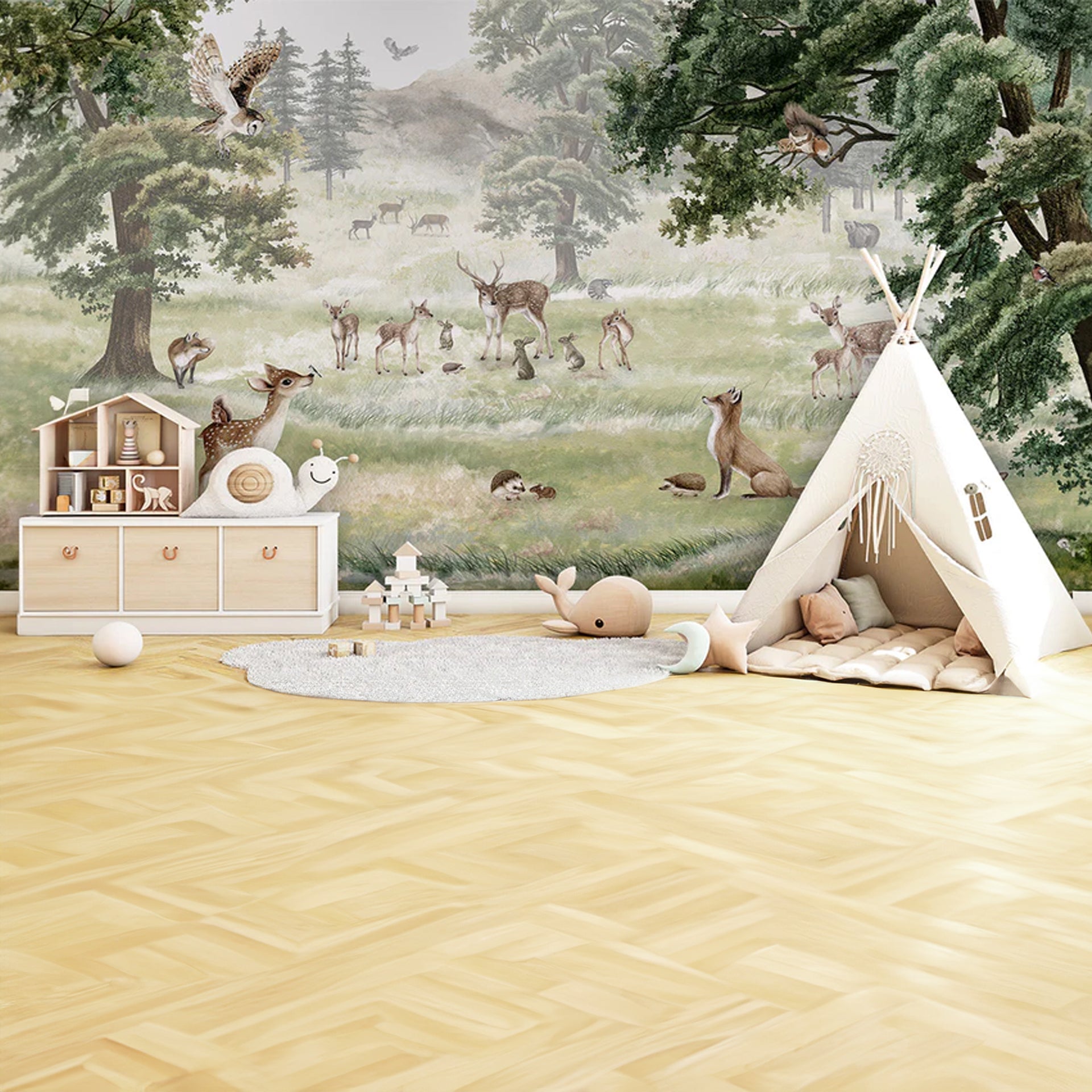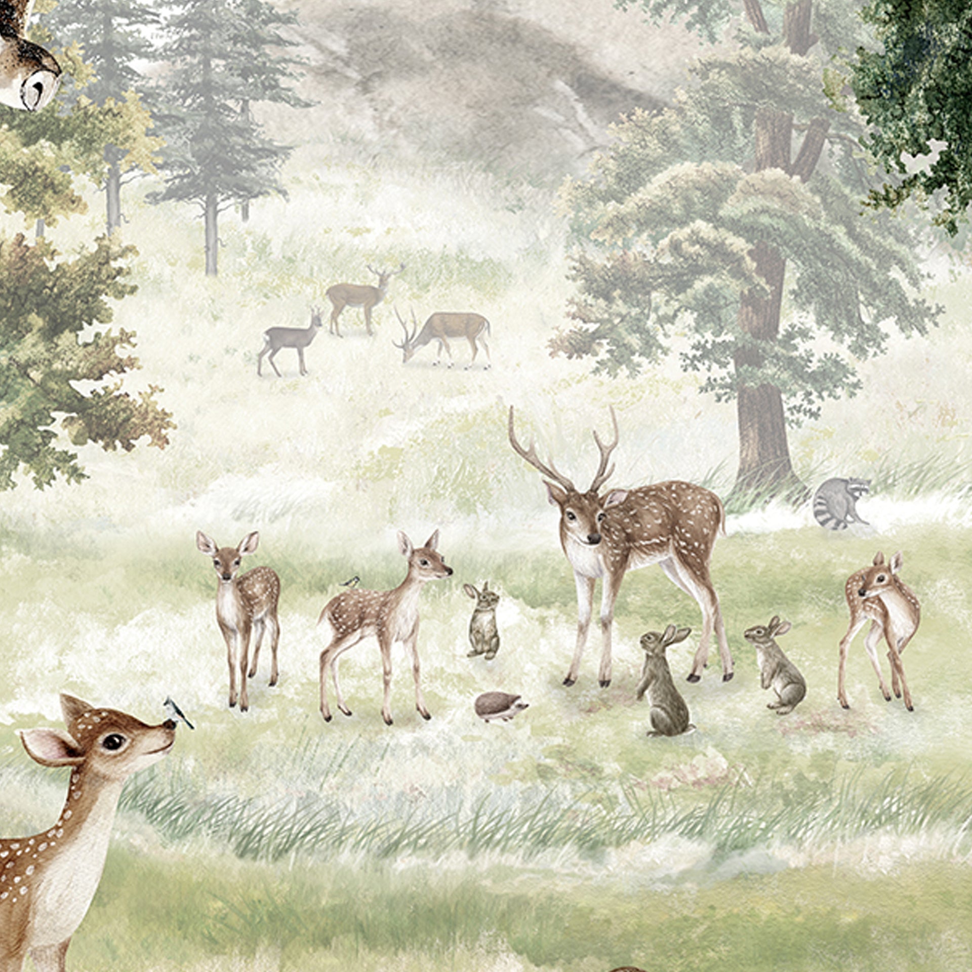 Forest-Fun: Peaceful WildlifeWallpaper With Deer, Rabbits, Squirrels and Birds in Lush Green Woods-Sample