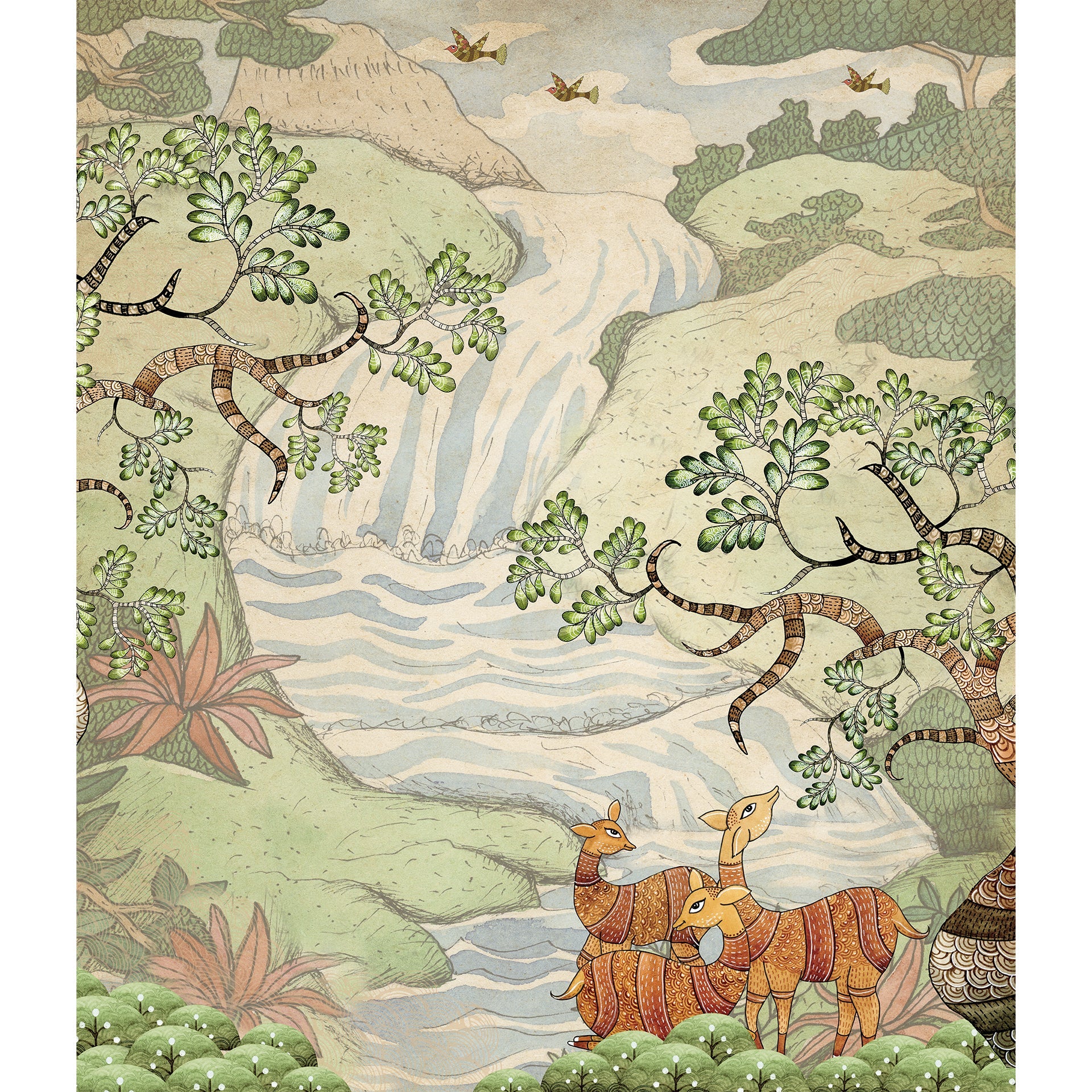 Forest Lullaby-Traditional Indian Artwork Depicting Nature, Animals, and a Serene Landscape-sample