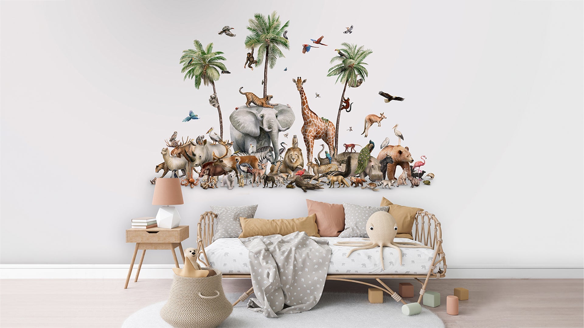 Group of Wild Animals Wallpaper For Kids Room or Nurseries-sample