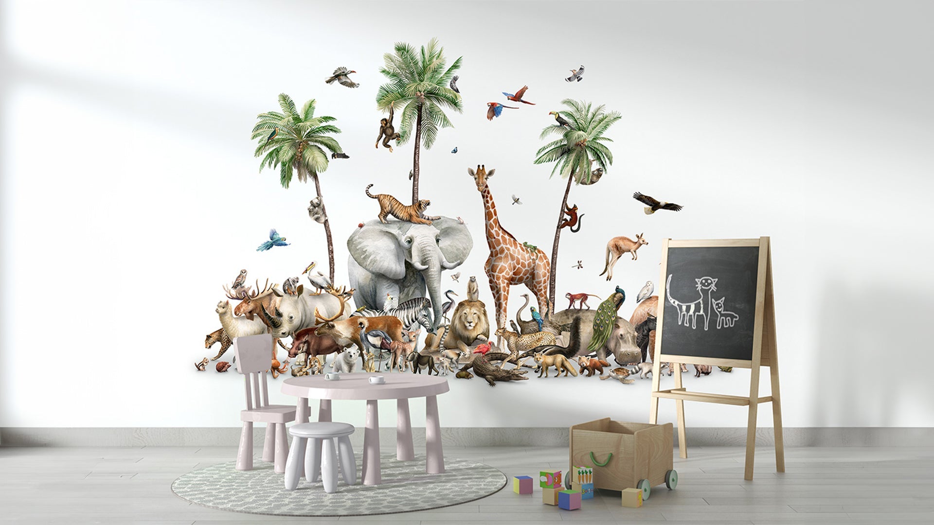 Bring nature indoors with our Group of Wild Animals Wallpaper – perfect for kids' rooms, nurseries, or play areas. Fun, educational, and full of adventure, it sparks imagination and curiosity!