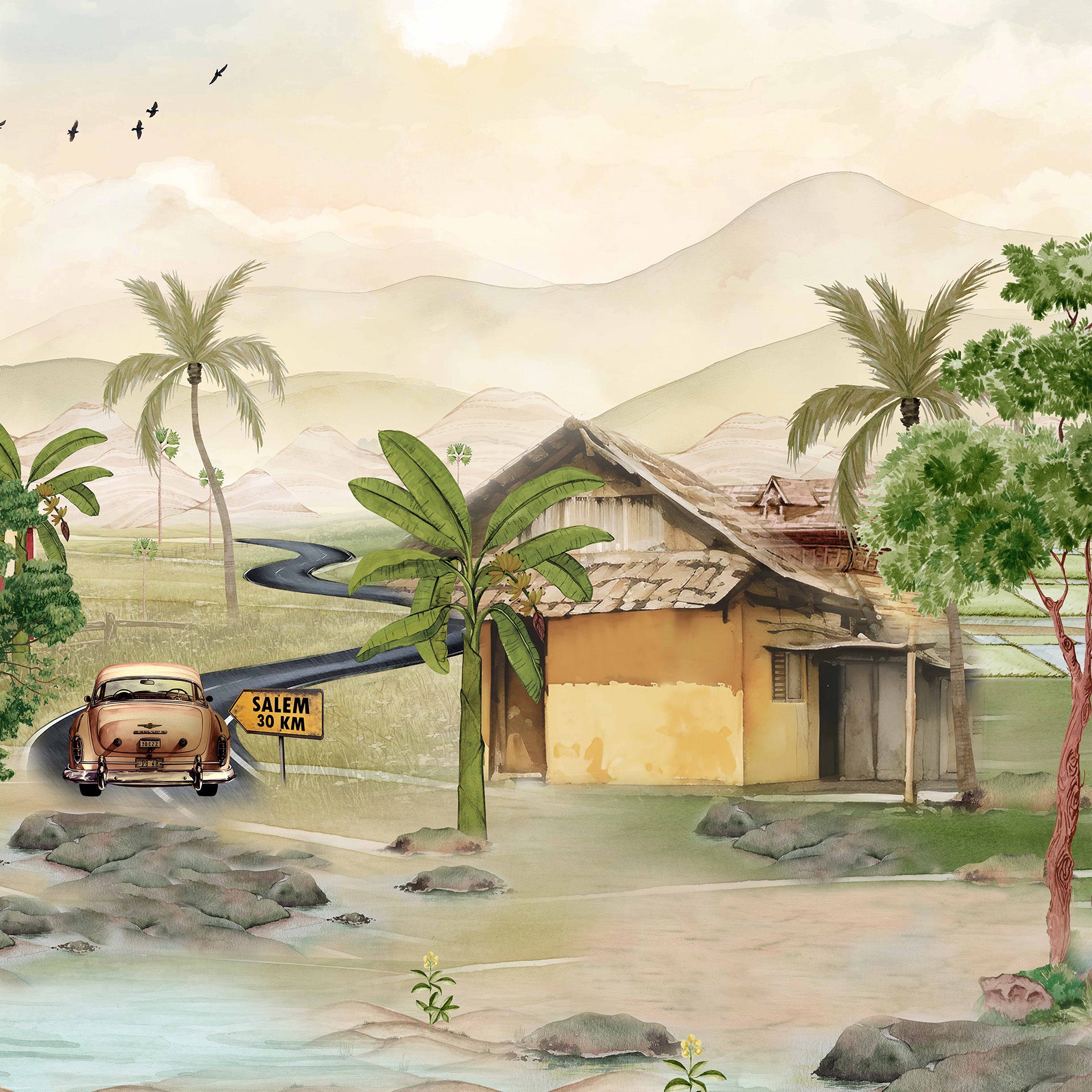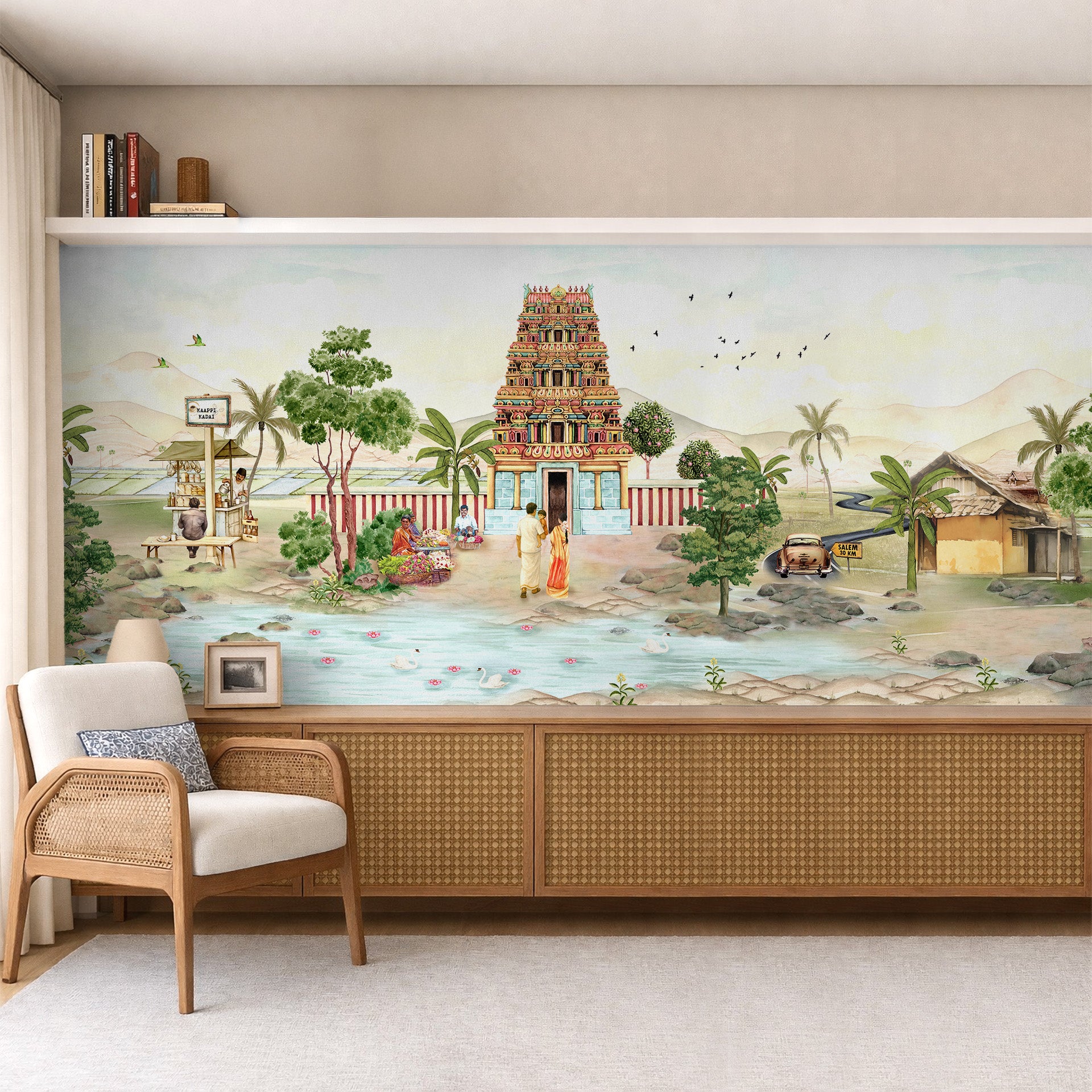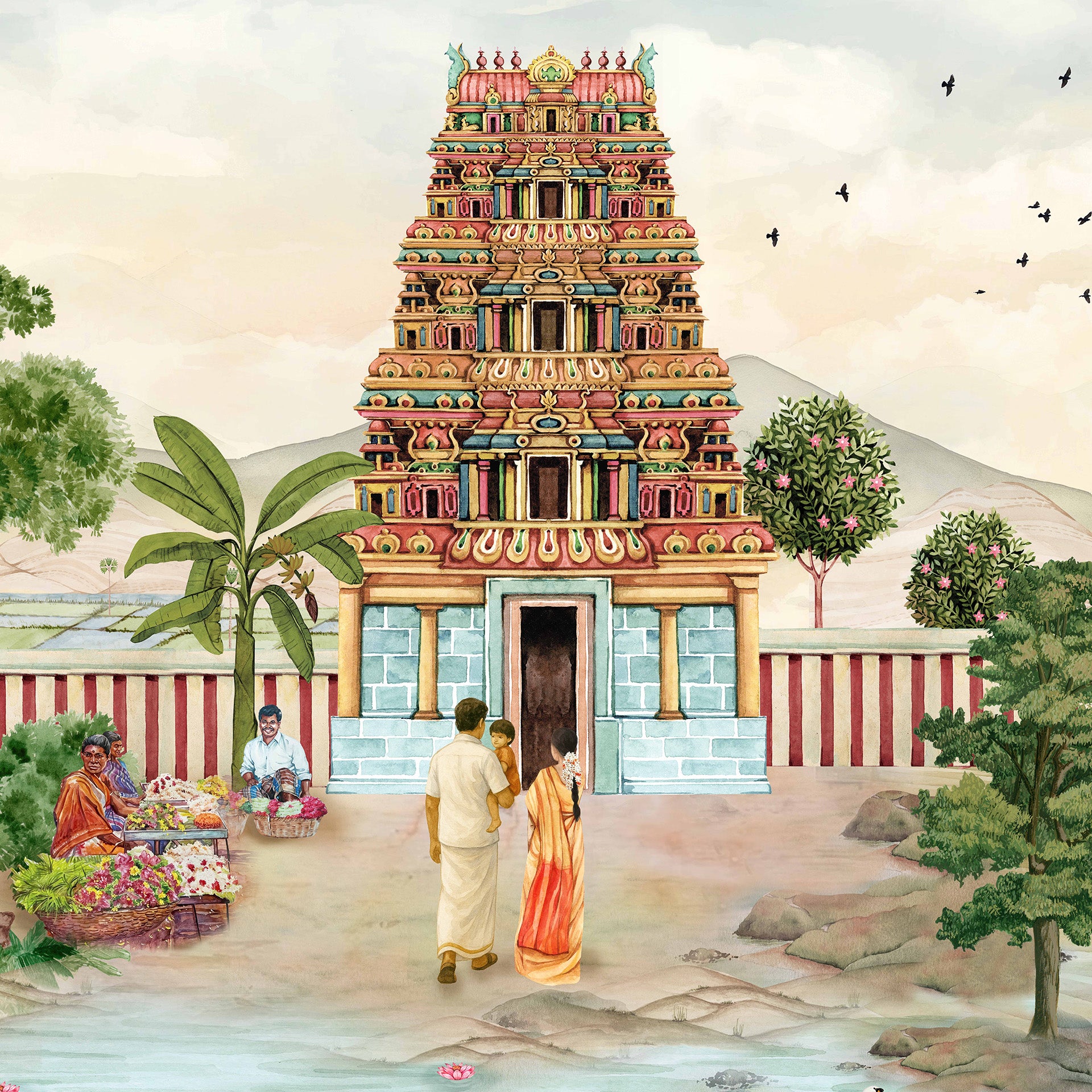Hamari Kahani: Village Temple Scene With Pilgrims, Flower Seller, Pond And Rural Landscape-Sample