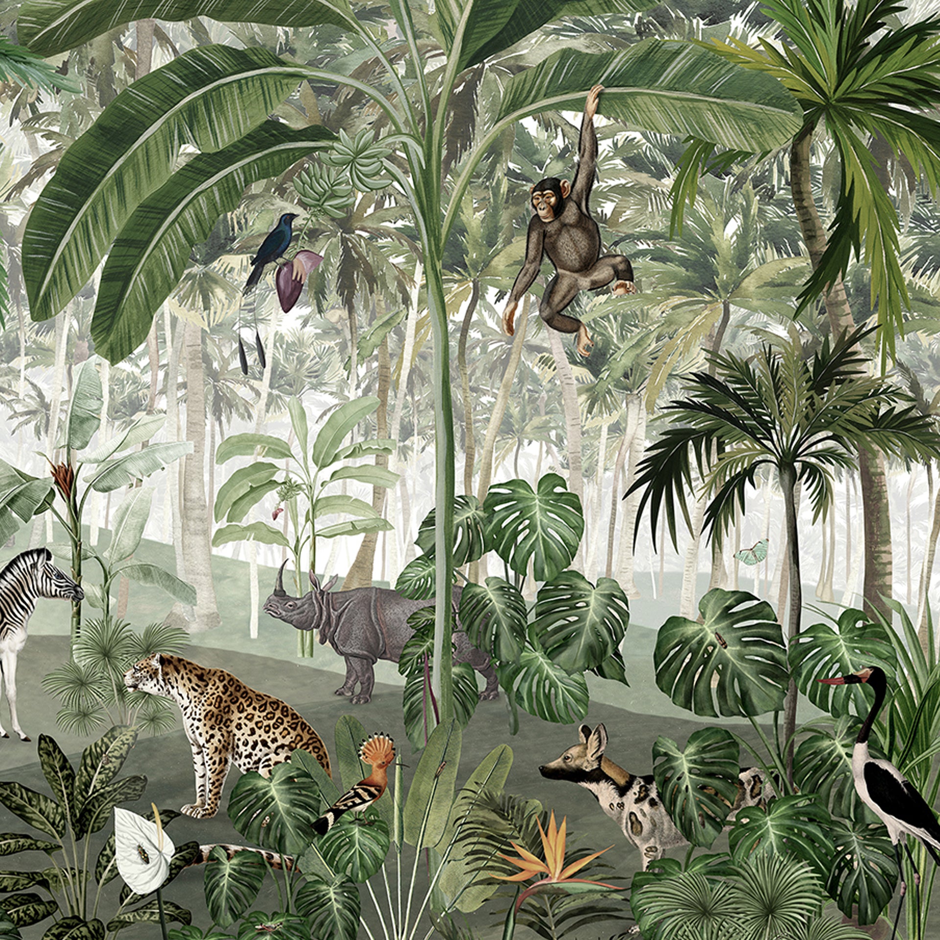 Jungle-Lookbook:Wallpaper With Diverse Animals, Lush Trees, And Hidden Flora For Nature Lovers-Sample