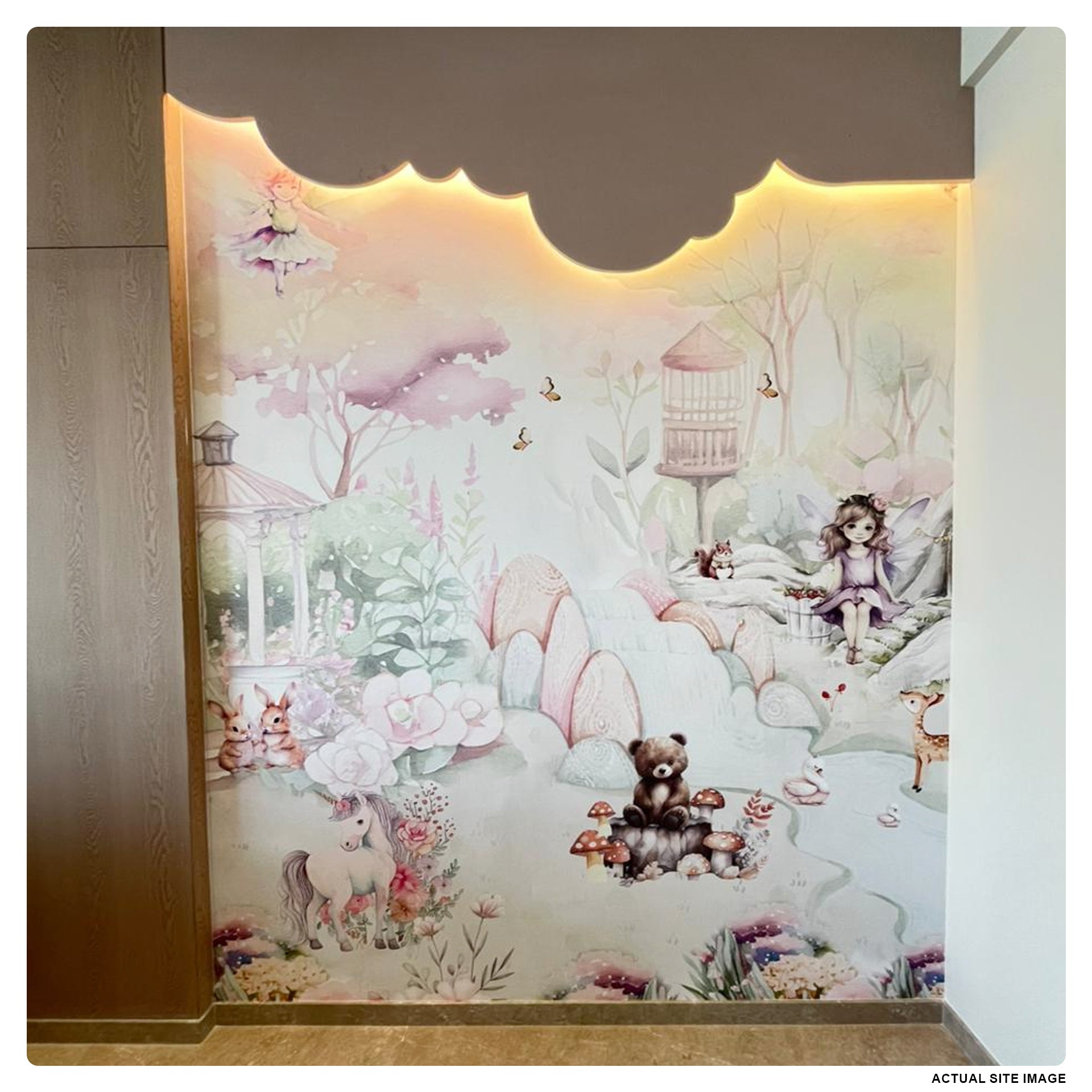 Magical pink Fairy Garden Wallpaper with Forest Creatures-sample