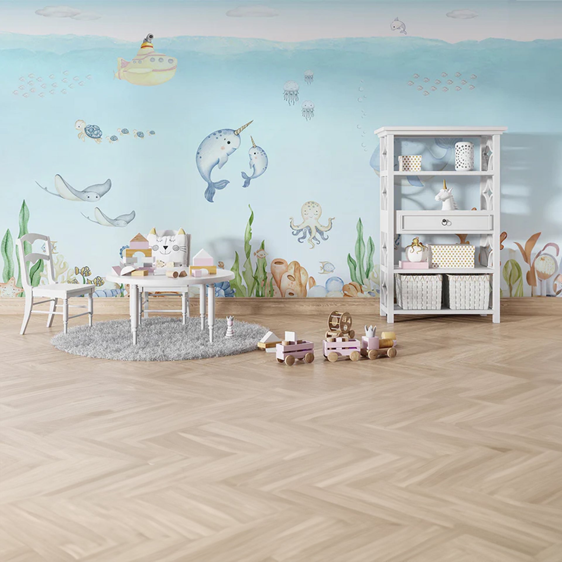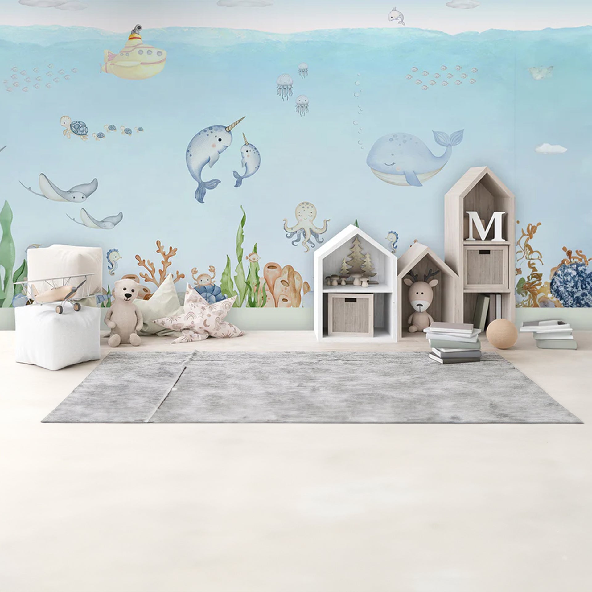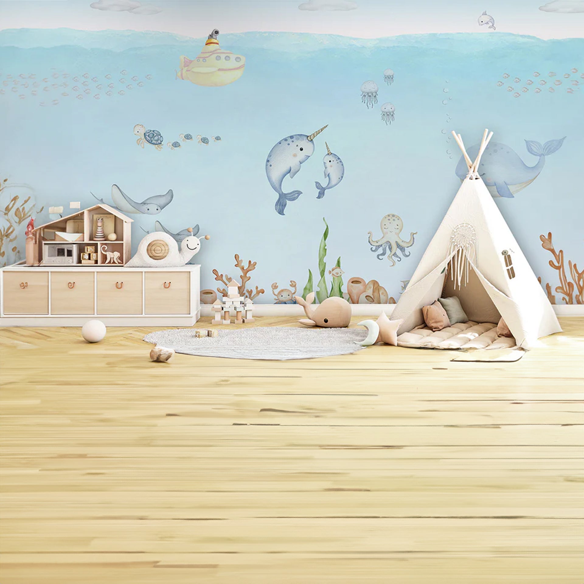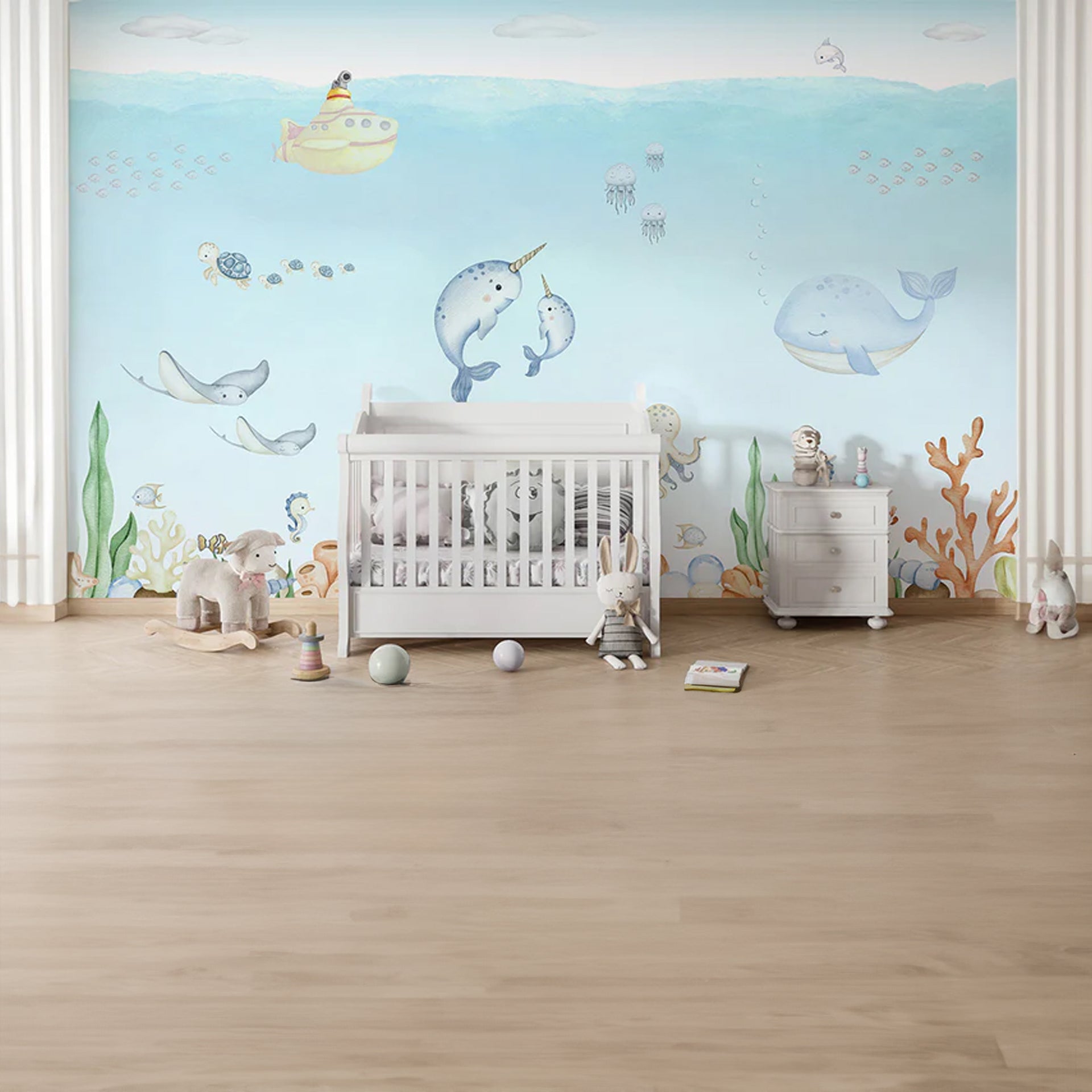 Ocean-Joy: Whimsical wallpaper With Whales, Coral Reef, Jellyfish, Submarine-Sample