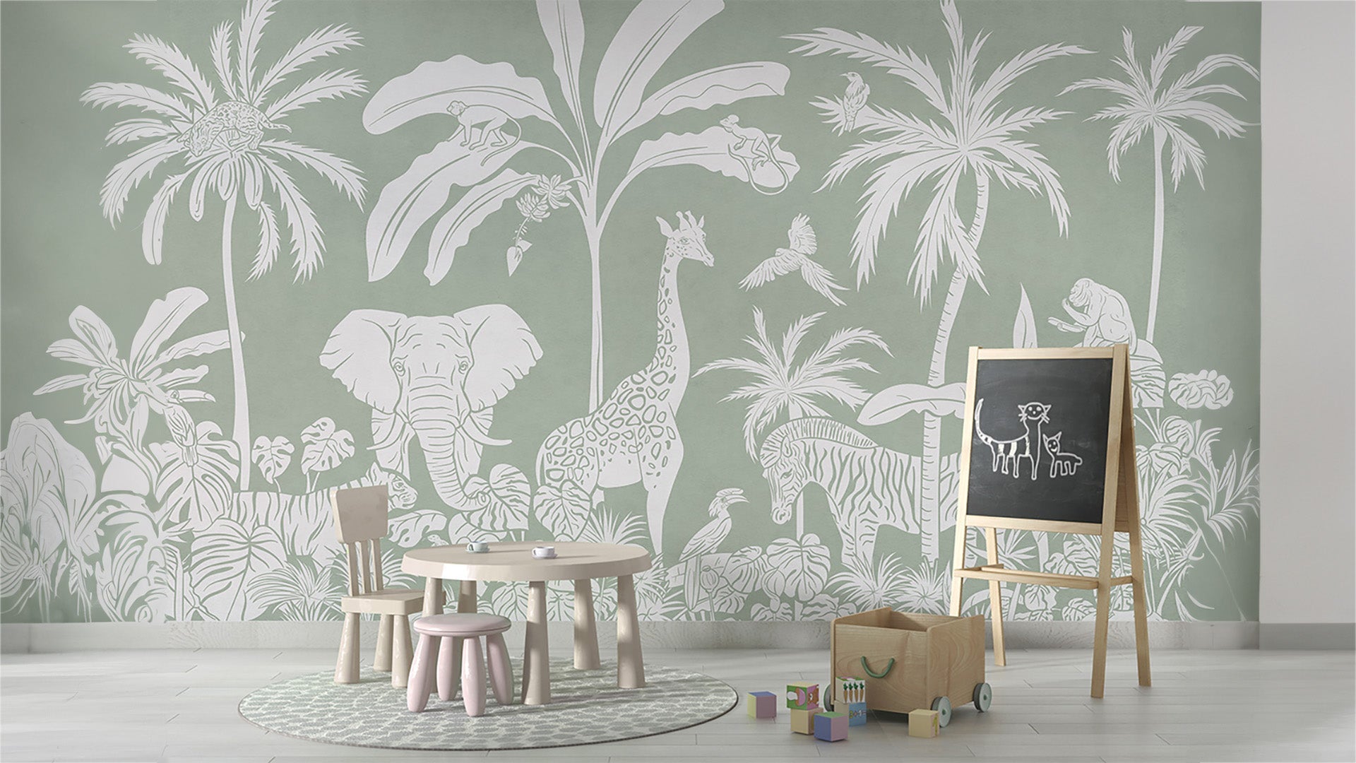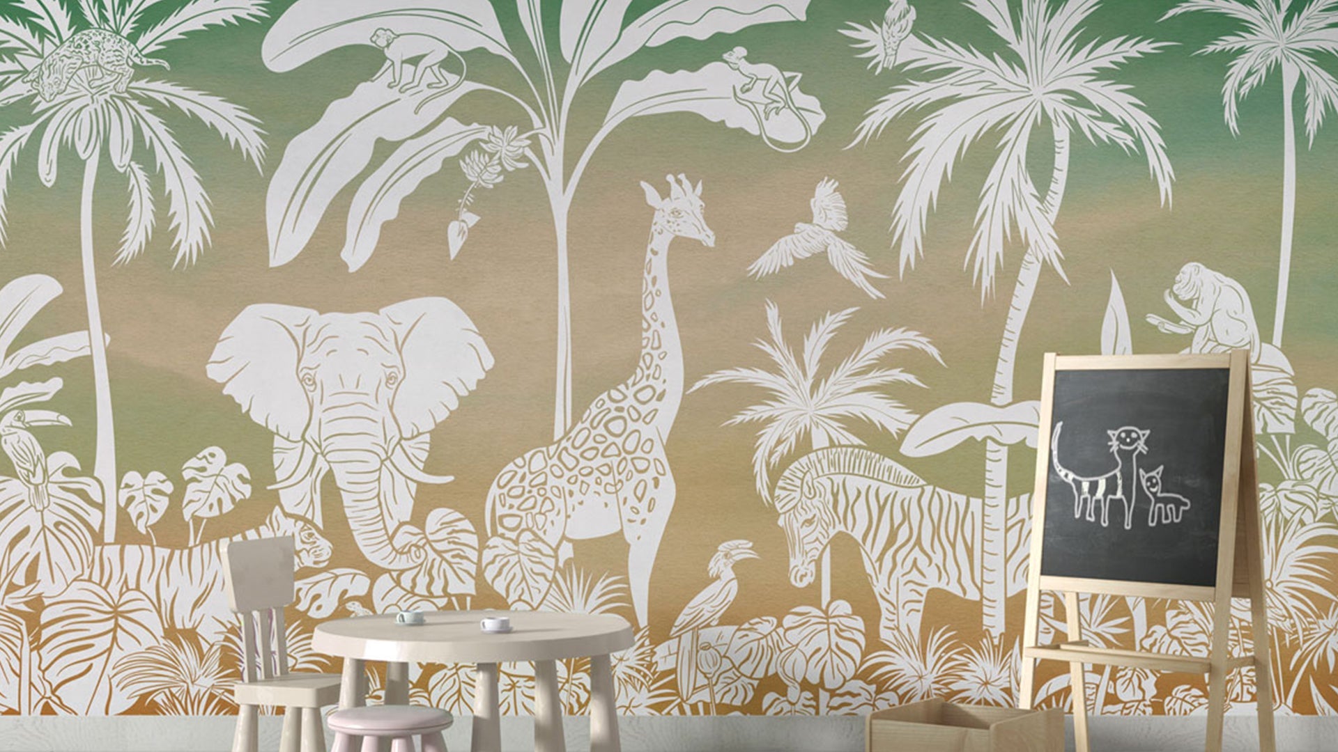 Vivid and playful wallpaper design with Jungle Safari for Kids' Room Wallpaper