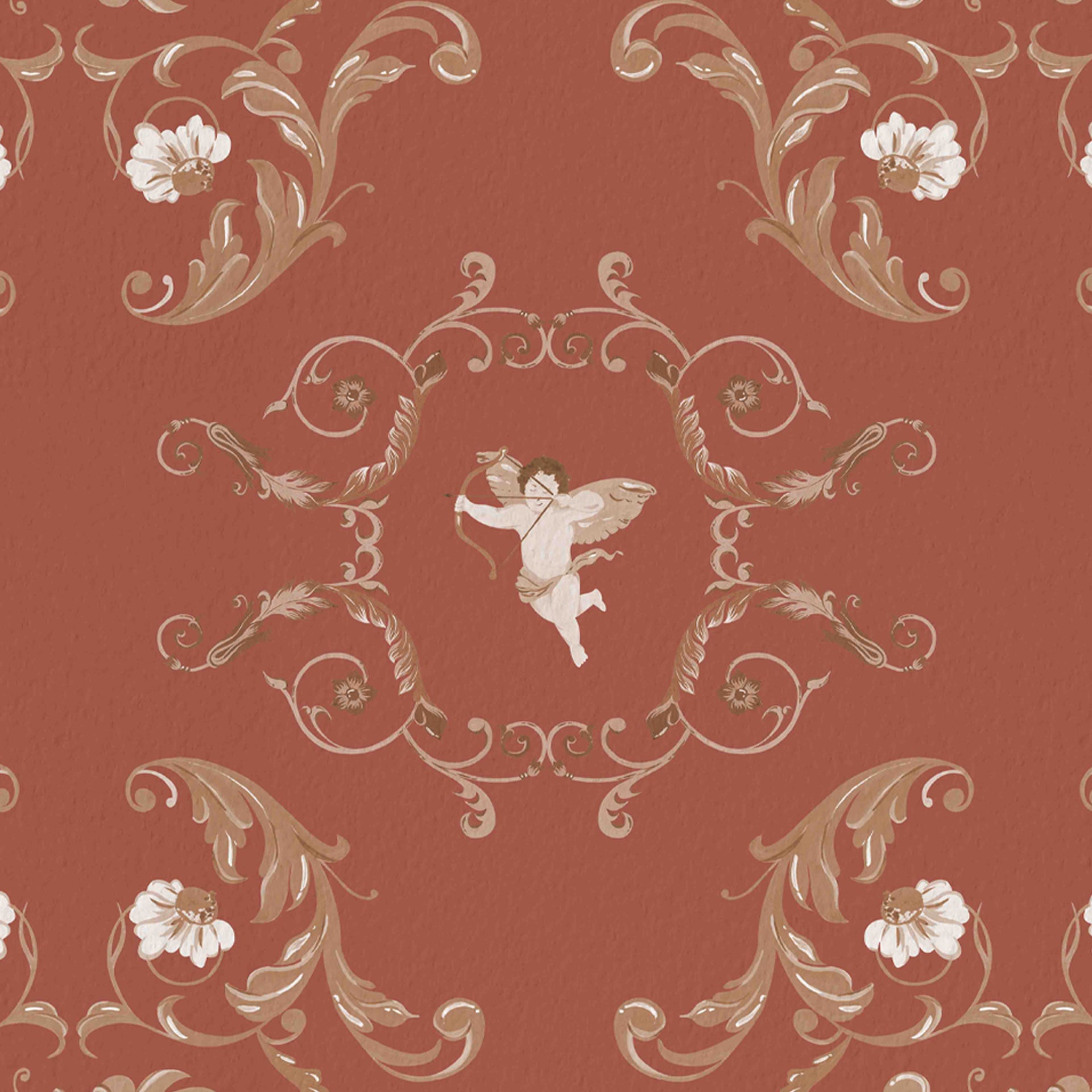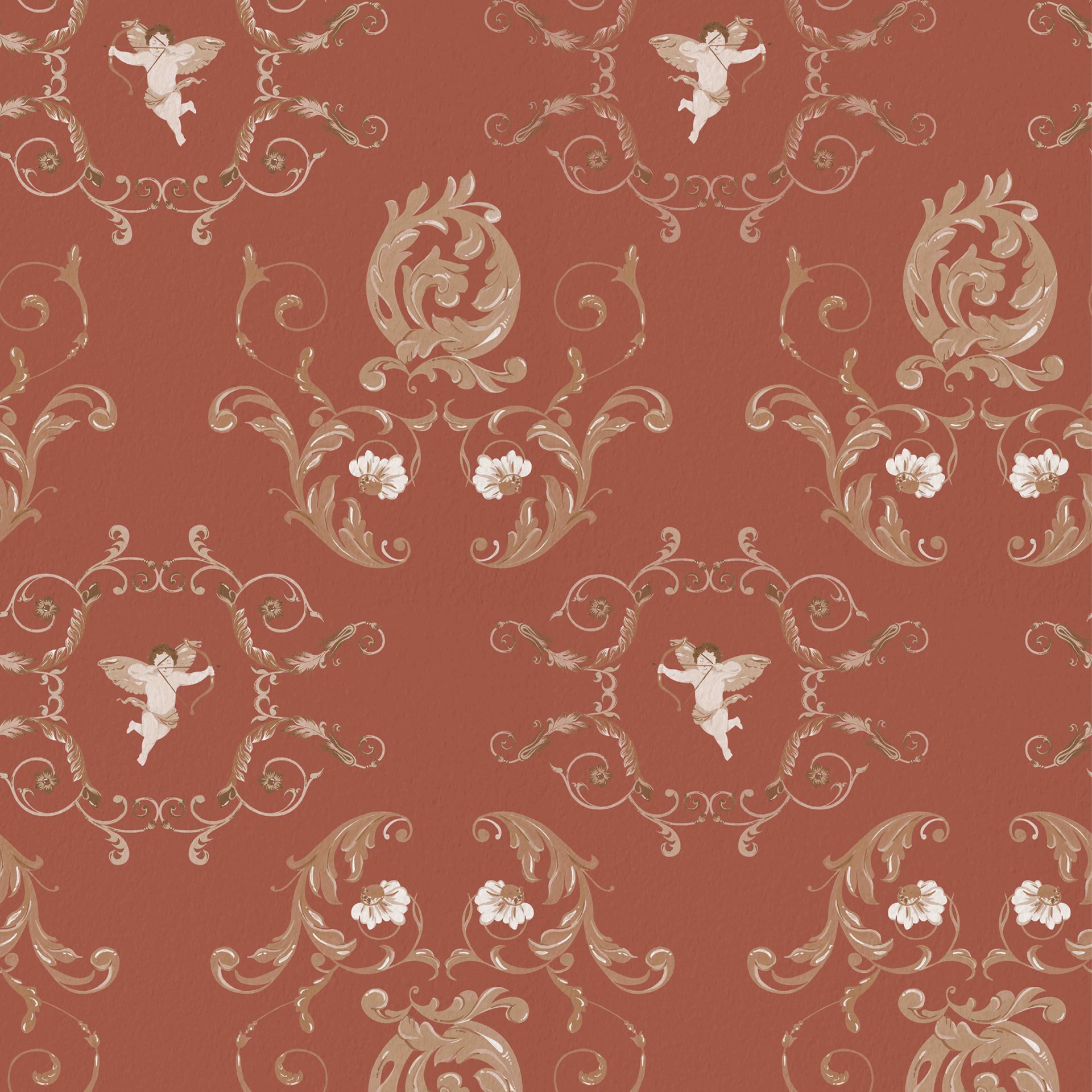 Elegant vintage pattern featuring cherubs, intricate swirls, and classic floral motifs in soft tones. Perfect for decorative projects, wallpapers, and luxurious designs emphasizing timeless beauty and romantic elegance.