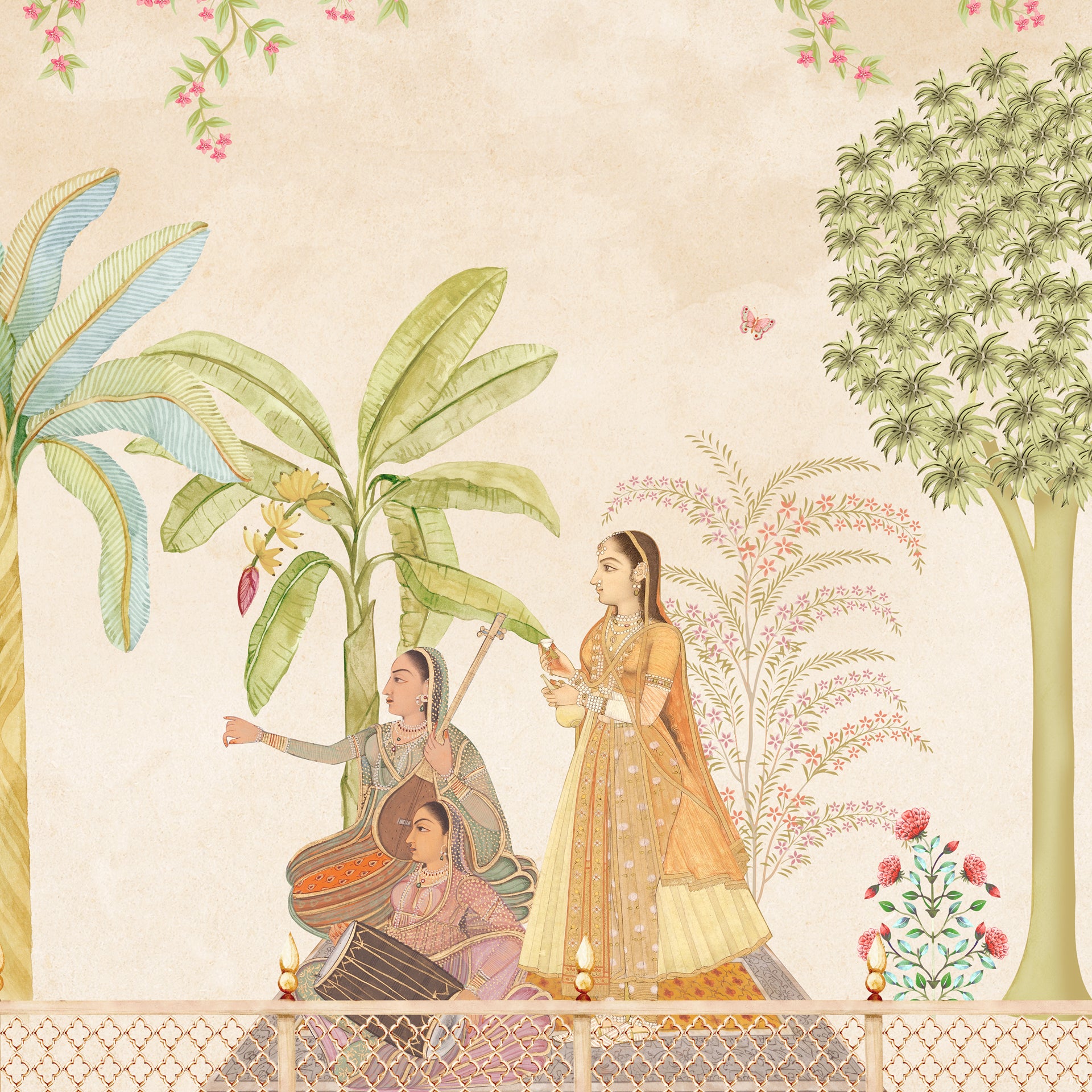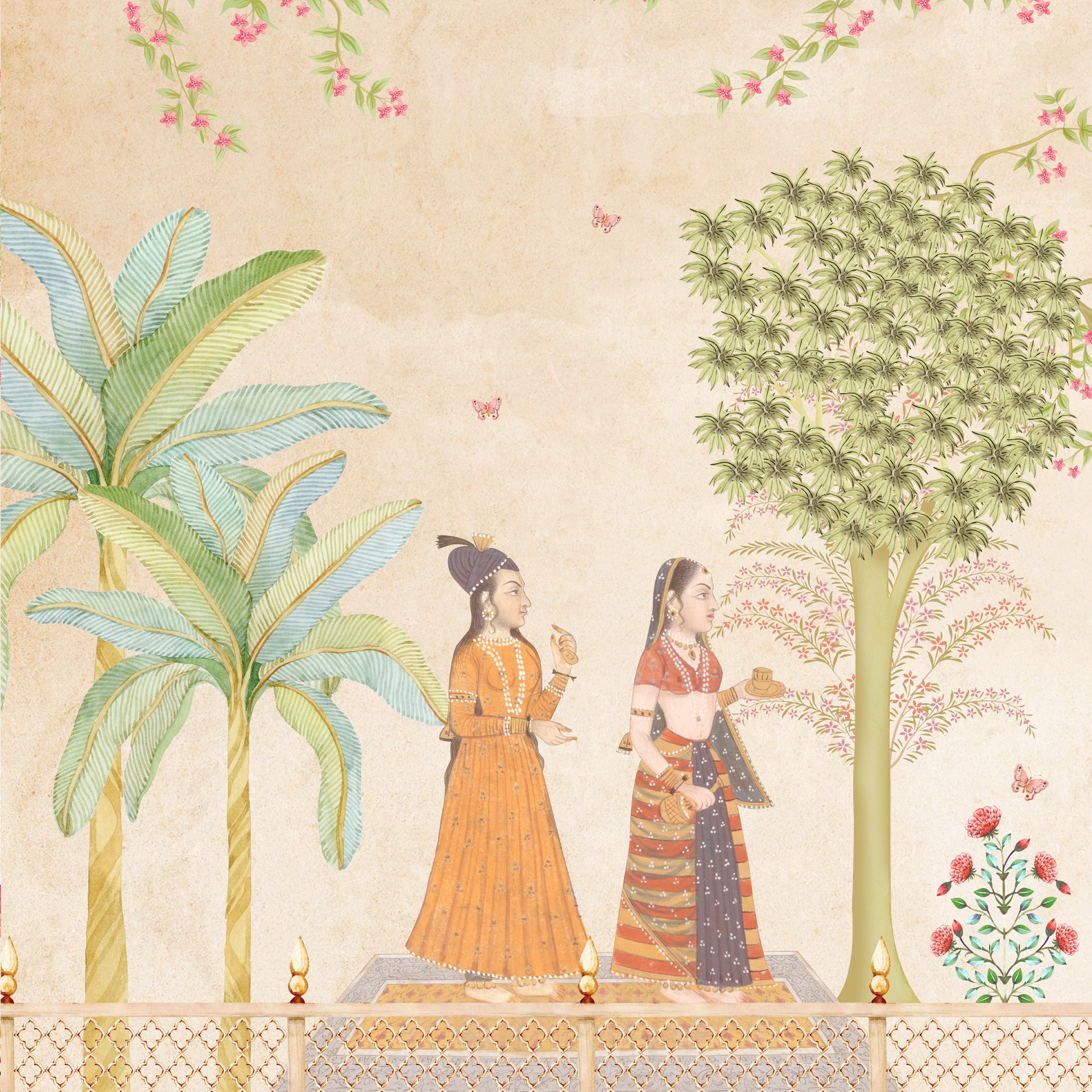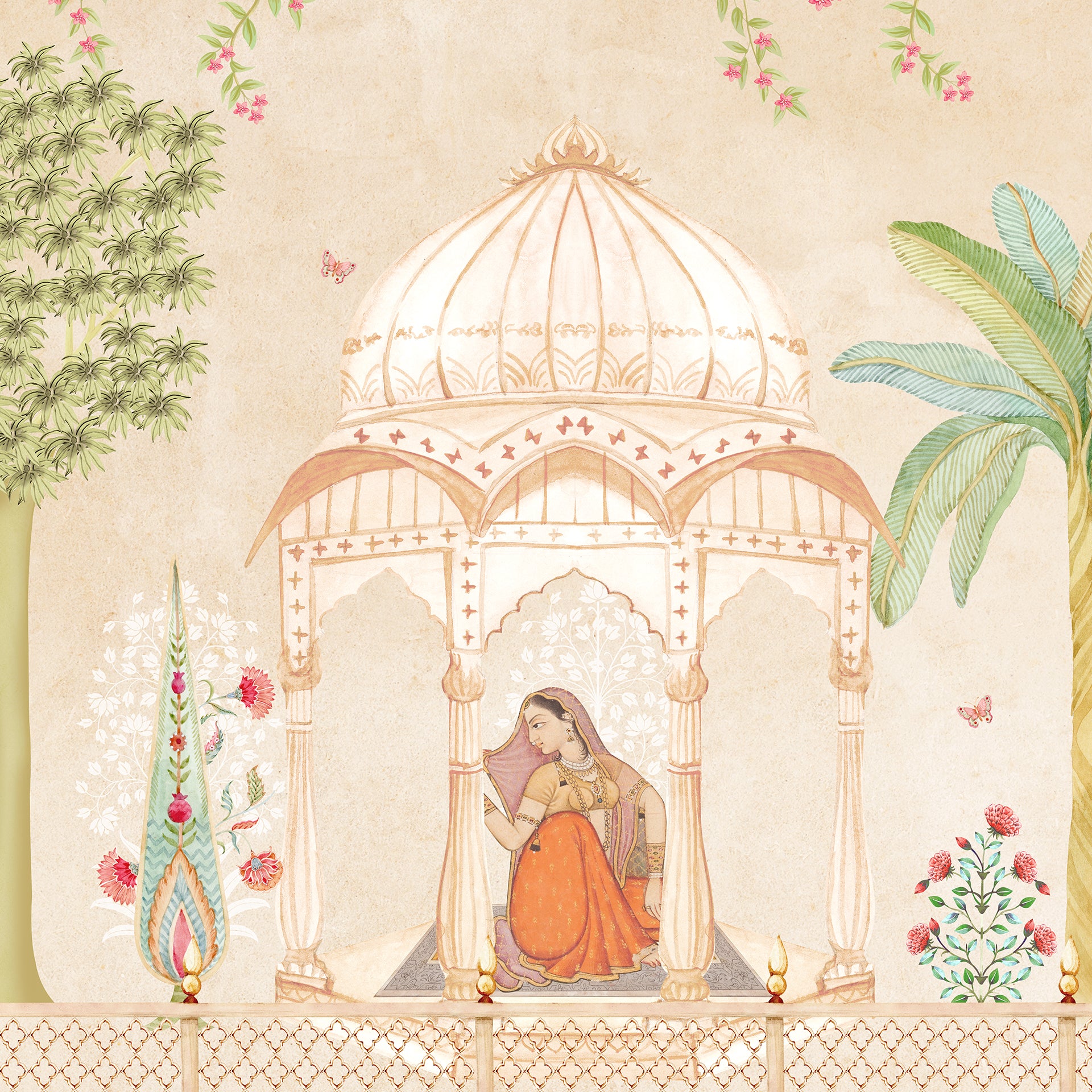 Shahi-Mehfil: Decorative Indian Garden Scene With Gazebos, Palm Trees & Royals-Sample