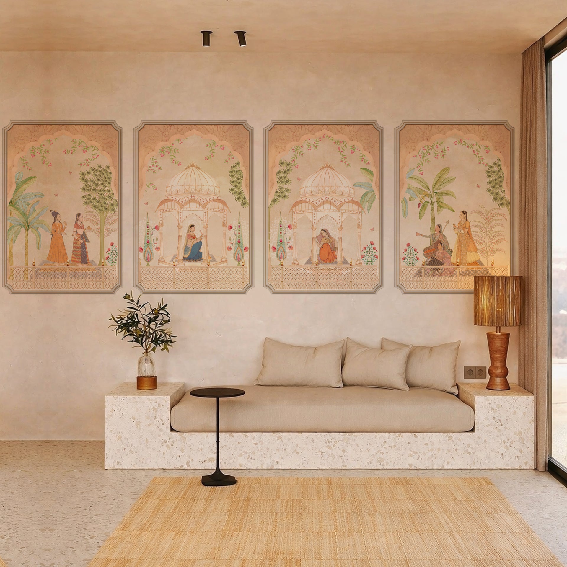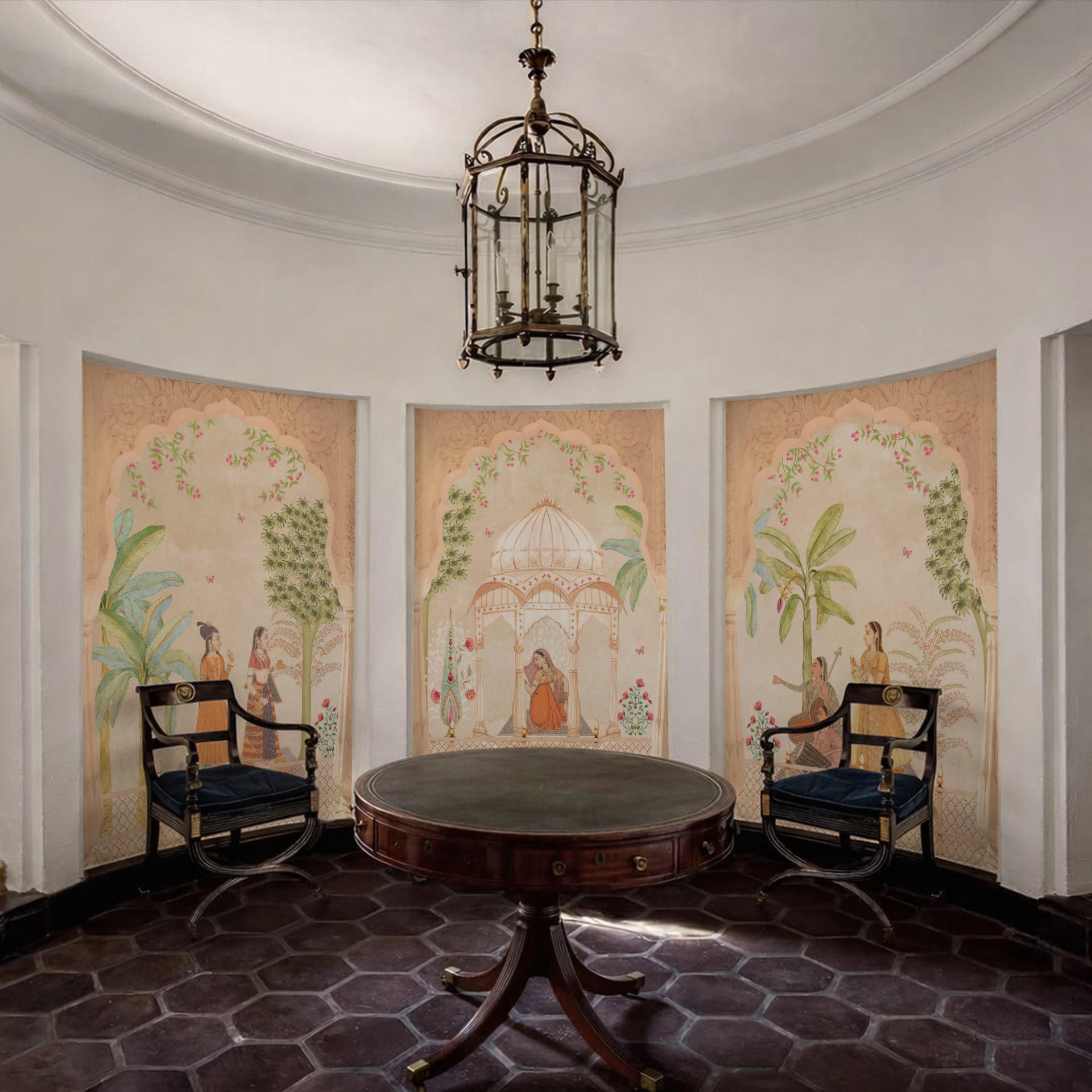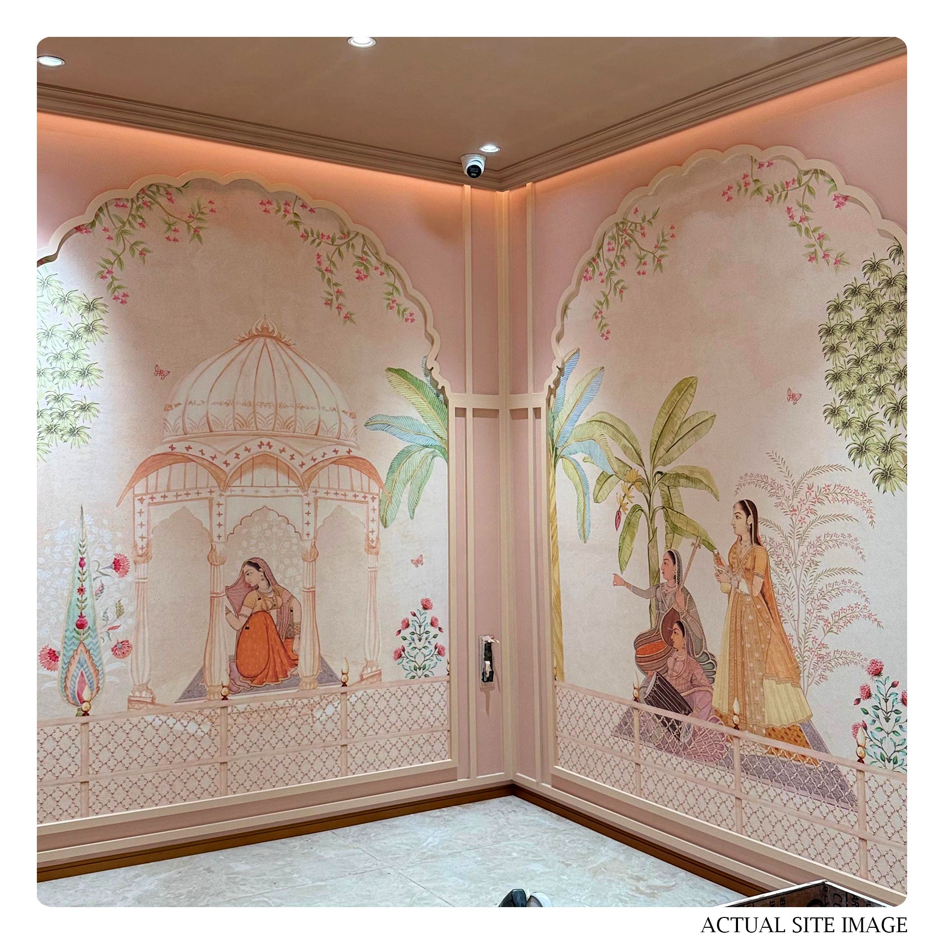 Shahi-Mehfil: Decorative Indian Garden Scene With Gazebos, Palm Trees & Royals-Sample