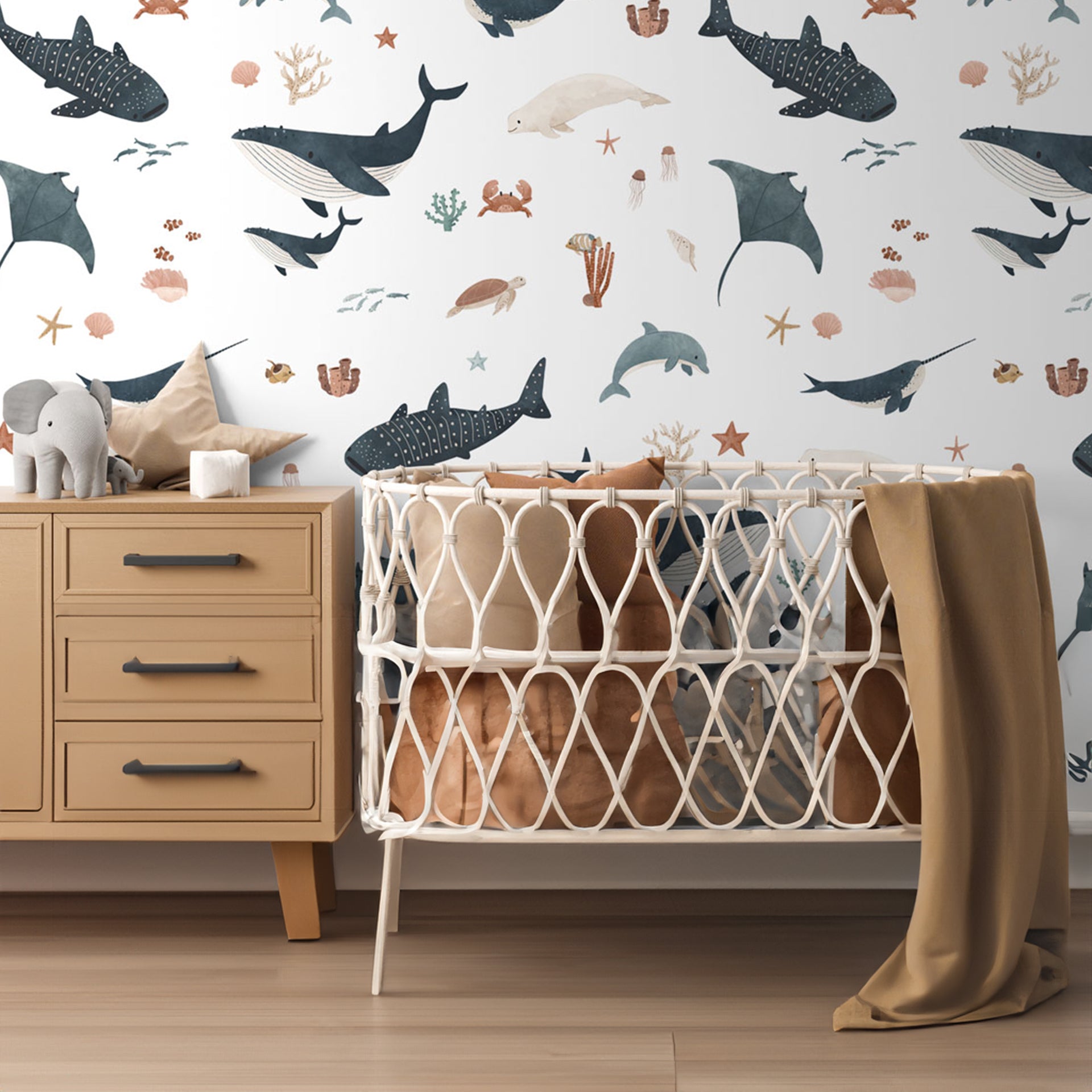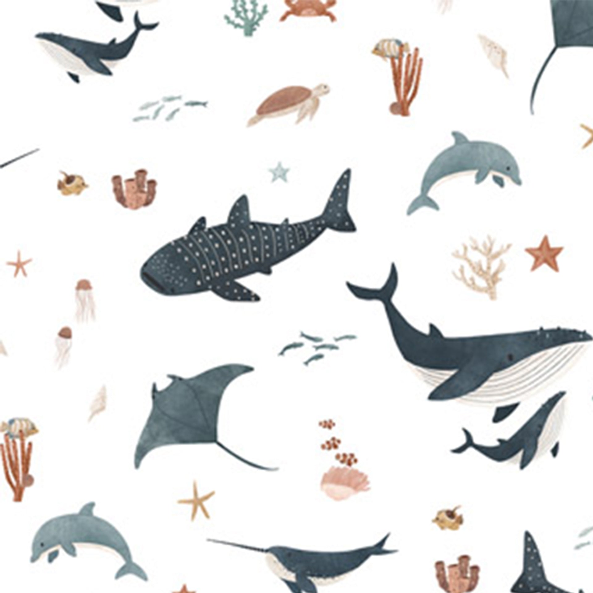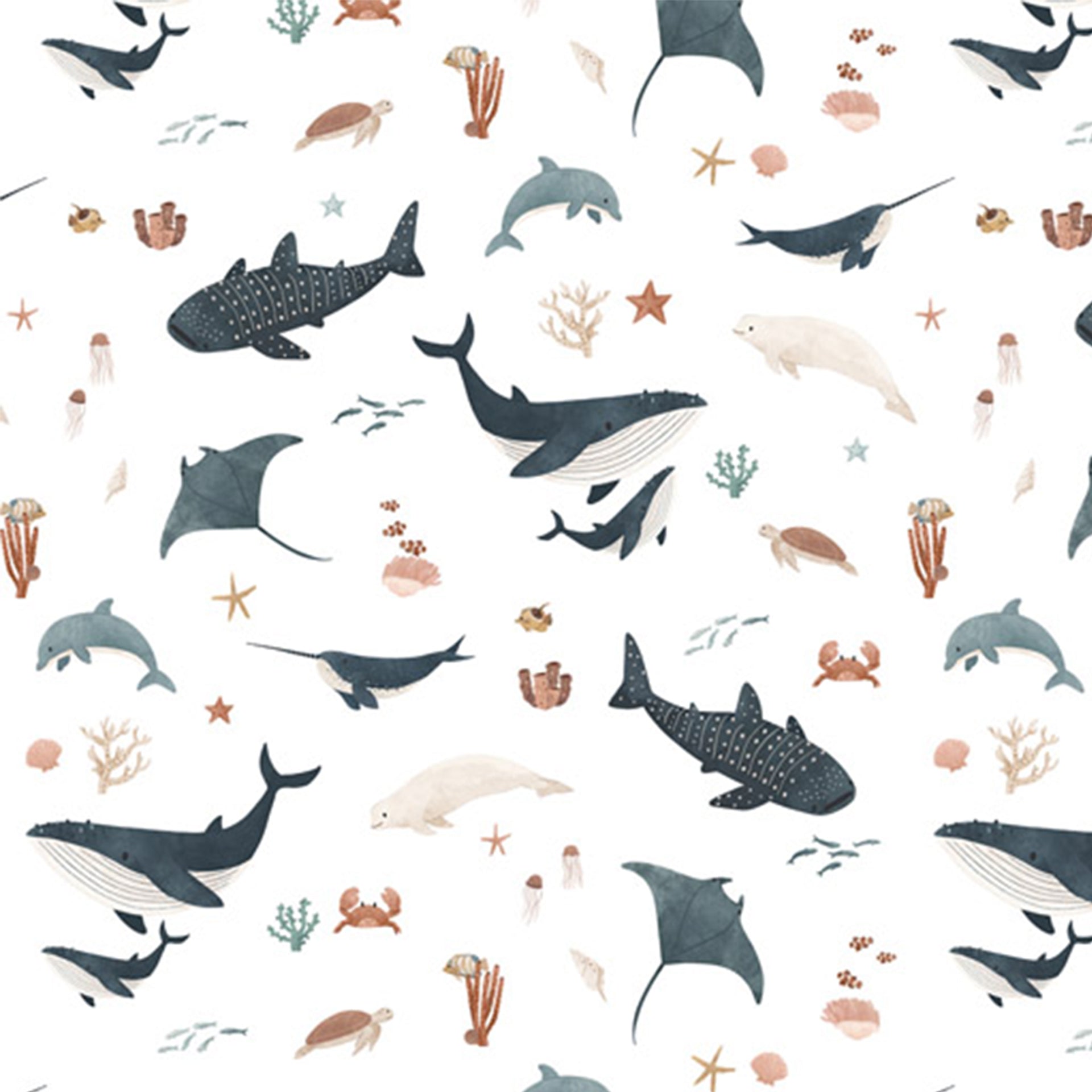 Splendid-Sea:Ocean Life Pattern With Whales, Sharks, Manta Rays and Coral -Sample