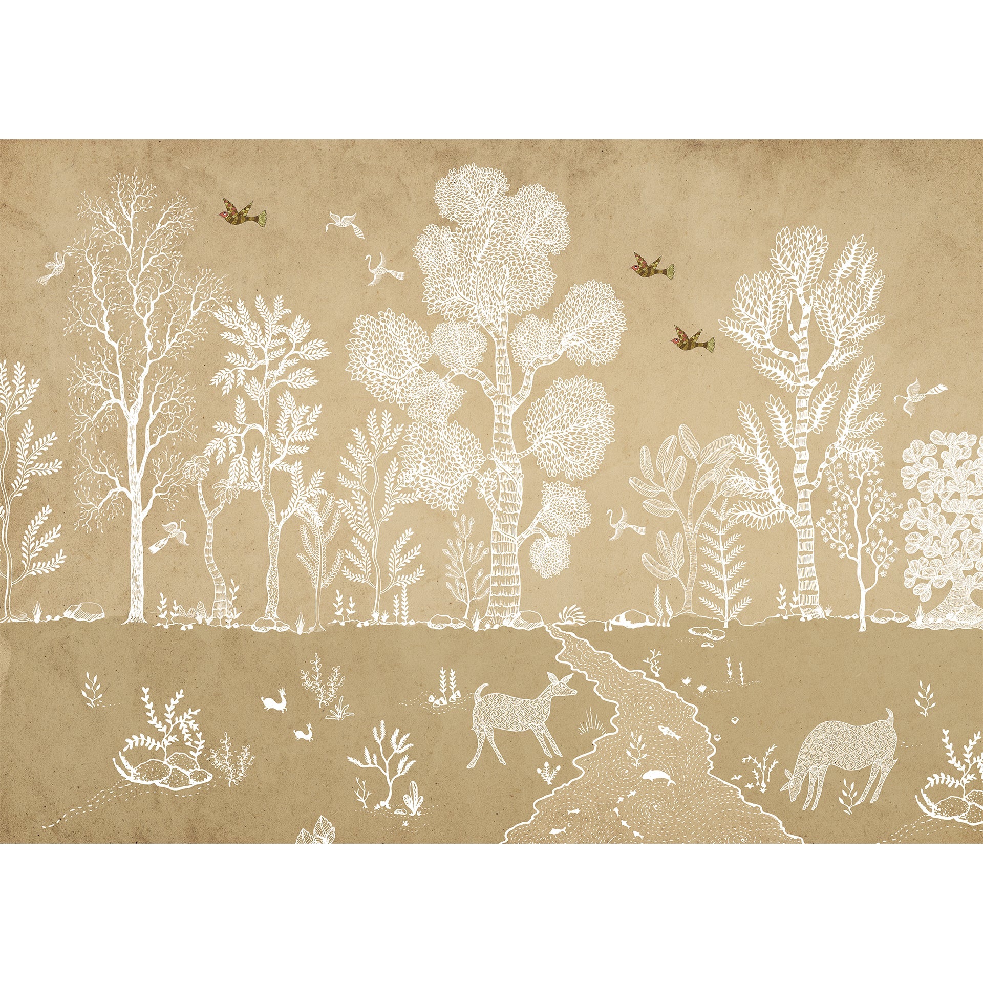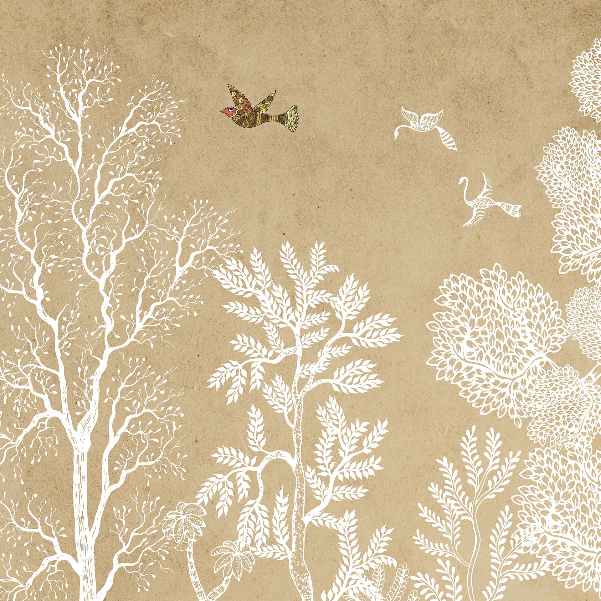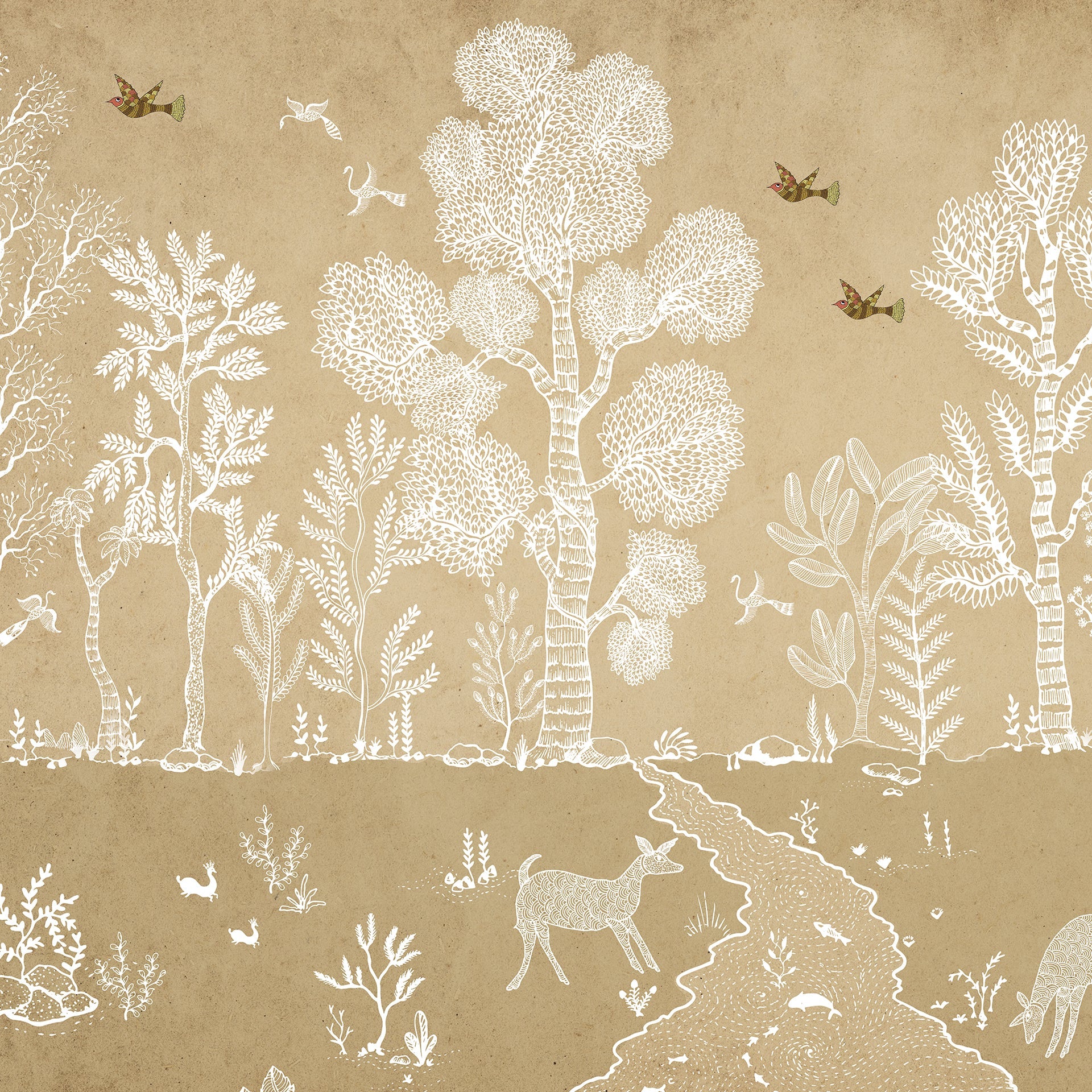 Subtle Embrace Colorway-Intricate Line Art Illustration of Nature with Trees, Animals, and Birds-sample