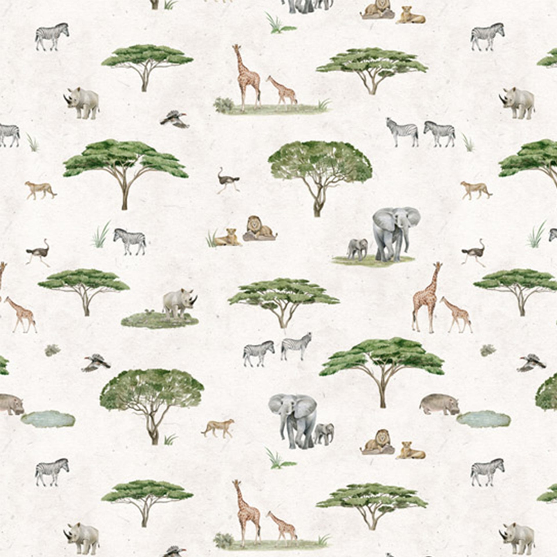 Sunny-Savannah:African Safari Pattern With Elephants, Giraffes, Lions, and Acacia Trees-Sample