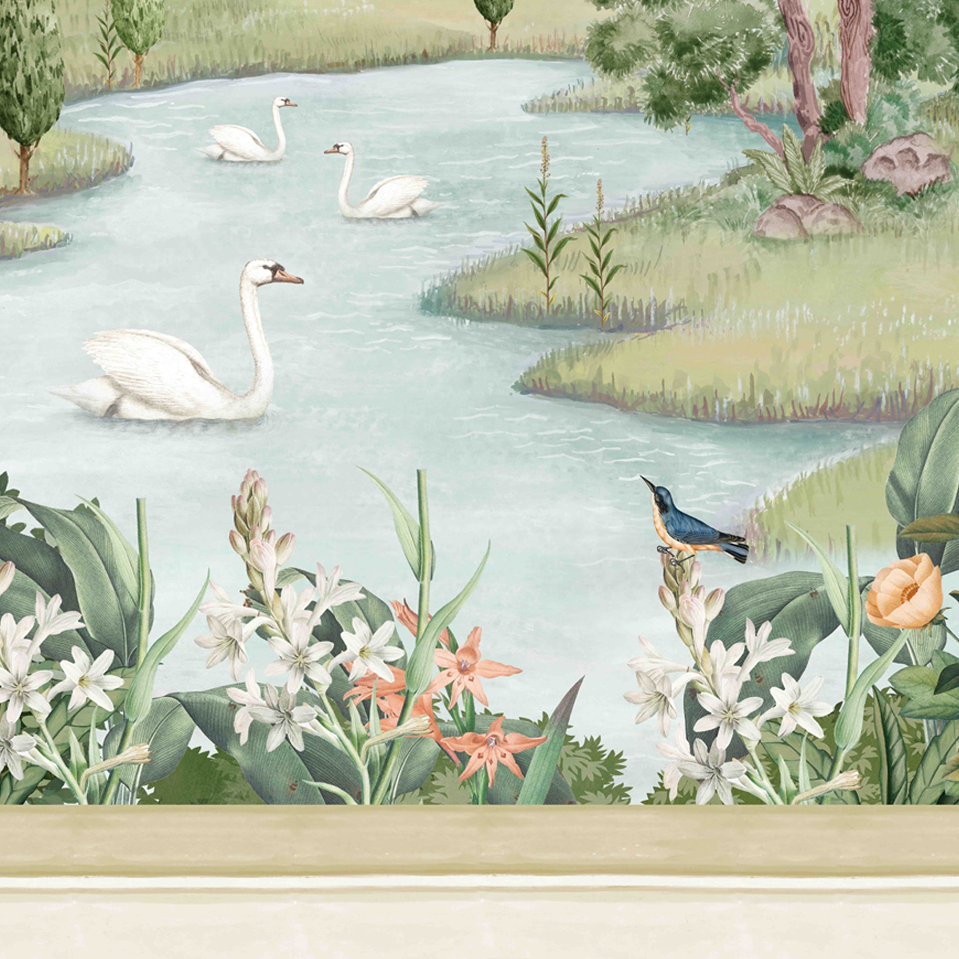 The Countryside Cottage: Picturesque Countryside Cottage Surrounded by Nature with Swans and Blooming Flowers- Sample
