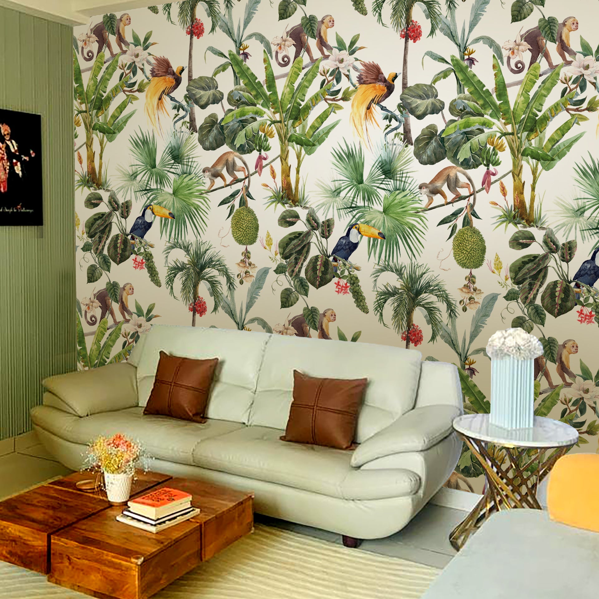 Exotic birds, animals and tree tropical wallpaper-sample
