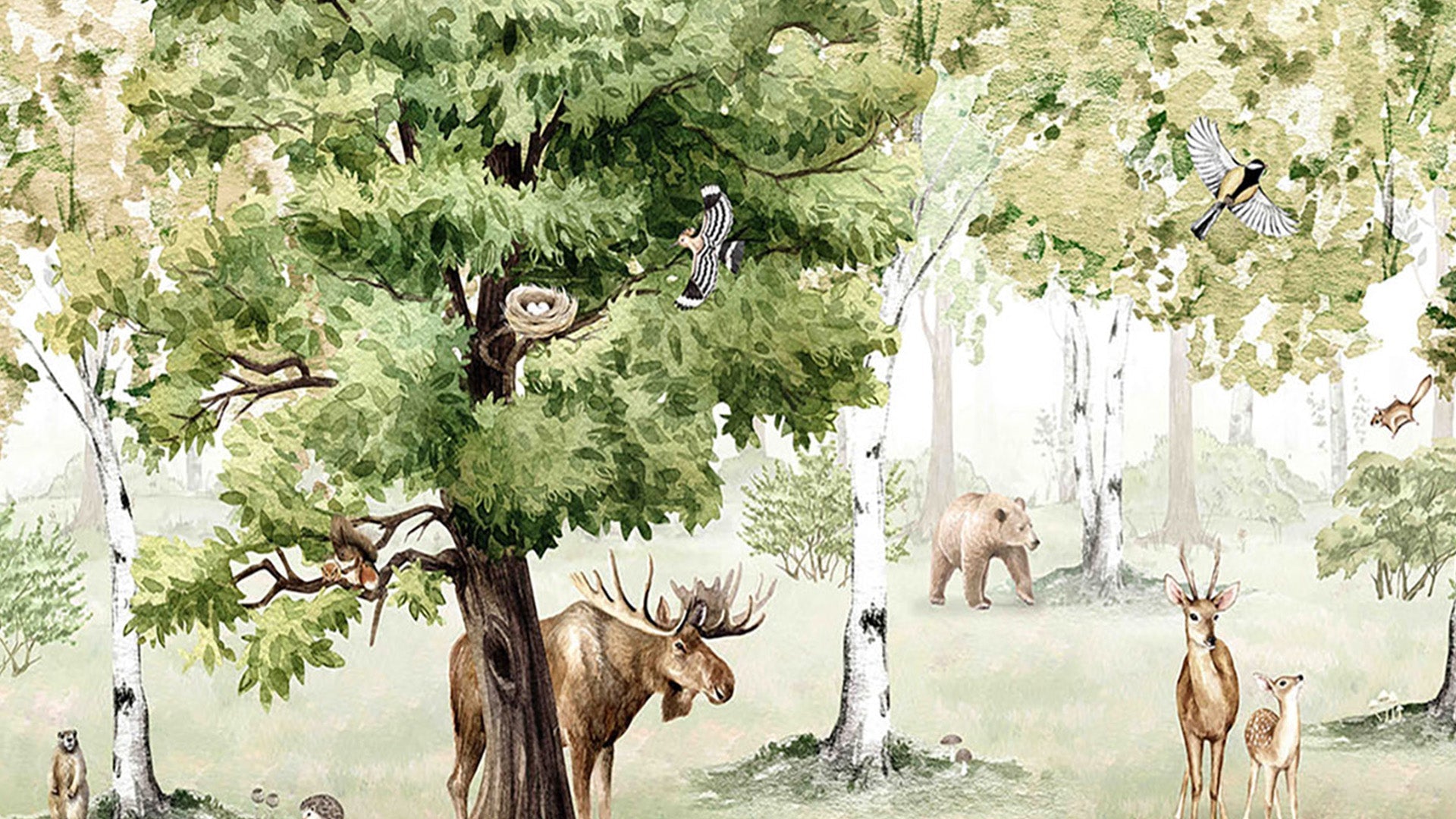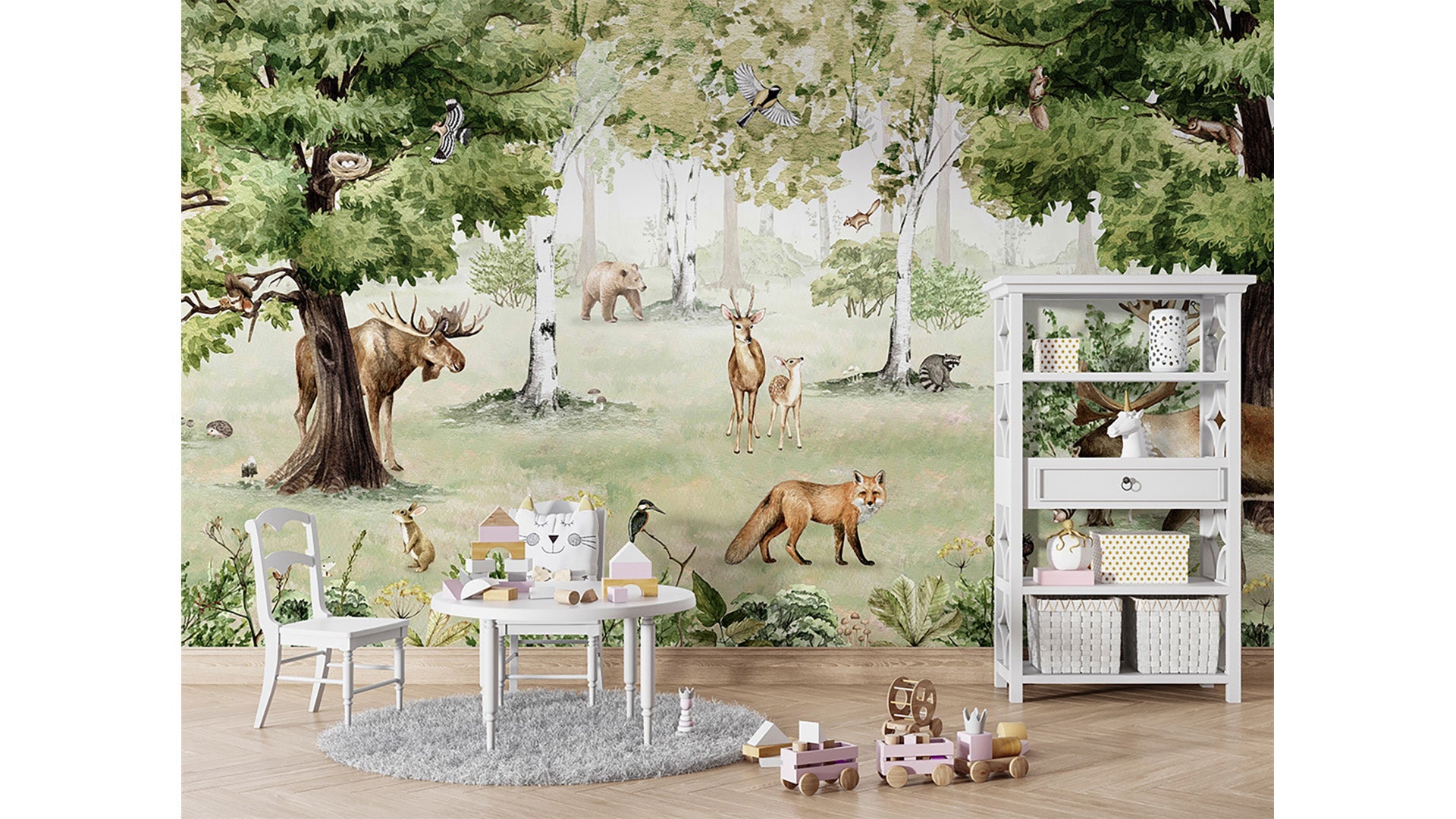 Whimsical forest creatures wallpaper brings the charm of nature into any child's bedroom. With its amusing woodland animals, offers a tranquil, imaginative atmosphere.